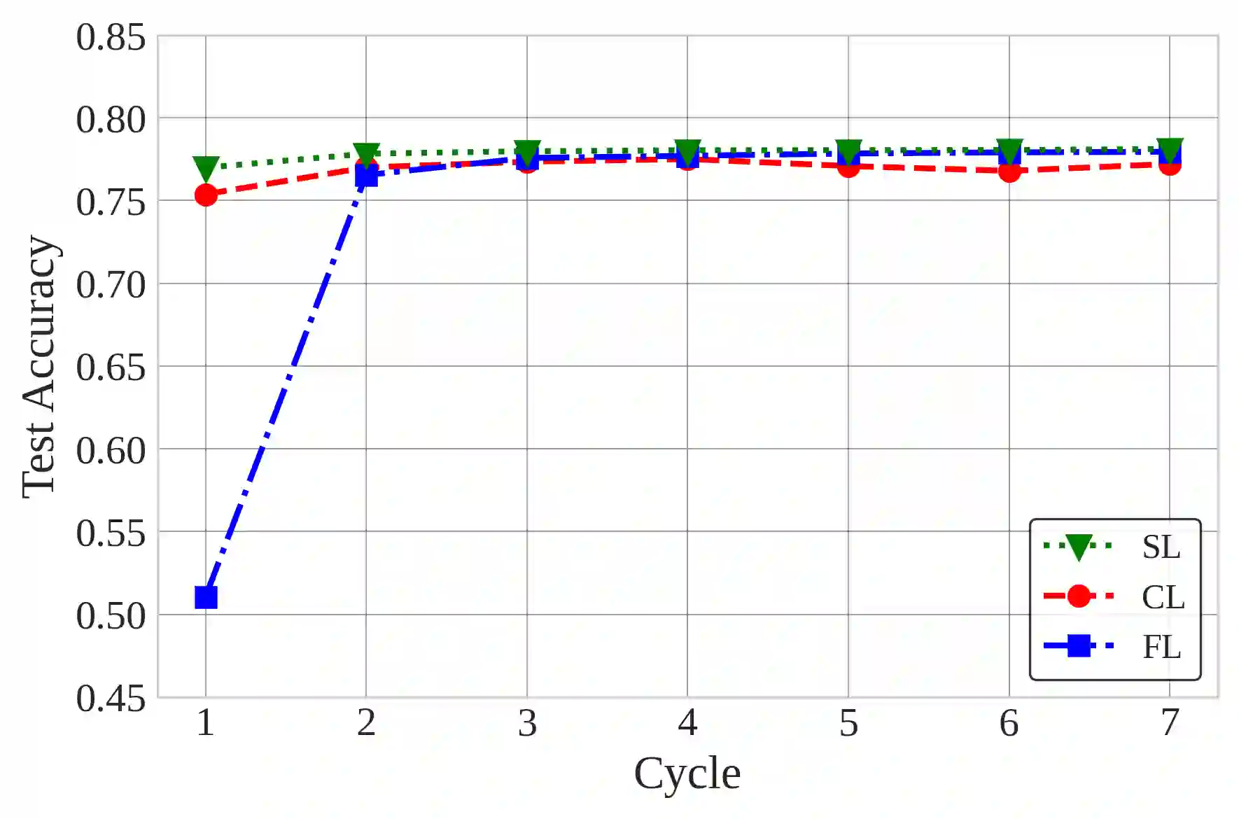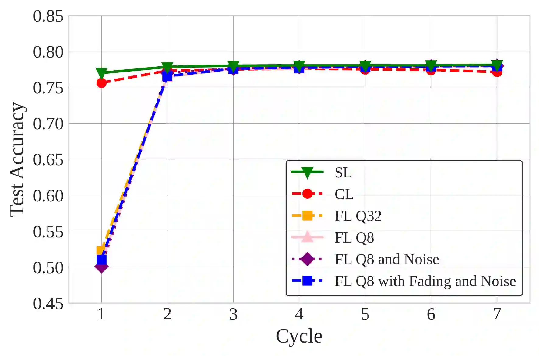 翻译:自然语言处理(NLP)任务,如语义情感分析和文本合成,常引发隐私担忧,并需要大量的设备端计算资源。边缘侧的集中式学习(CL)提供了一种高能效的替代方案,但需要收集原始数据,从而损害用户隐私。虽然联邦学习(FL)增强了隐私保护,但它对资源受限的设备施加了较高的计算能耗要求。我们引入分割学习(SL)作为一种高能效、保护隐私的微型机器学习(TinyML)框架,并在存在瑞利衰落和加性噪声的情况下,将其与FL和CL进行比较。我们的结果表明,SL显著降低了计算功耗和二氧化碳排放,同时增强了隐私保护,其重建误差相比FL增加了四倍,相比CL增加了近十八倍,这提供了有力证据。相比之下,FL在隐私与效率之间提供了更均衡的权衡。本研究为在边缘设备上部署保护隐私、高能效的NLP模型提供了见解。