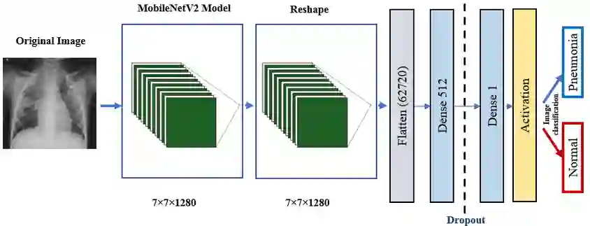 翻译:肺炎是一种由细菌或病毒引起的呼吸道感染,它影响到大量的人,特别是在发展中国家和贫穷国家,那里经常观察到污染程度高、生活条件不干净和过分拥挤,加上医疗基础设施不足。肺炎引发了肺炎,使液体填充肺部和使呼吸复杂化的状态变得模糊不清。早期发现肺炎对于确保治疗护理和提高存活率至关重要。最常用的诊断肺炎的方法是胸部X射线成像。这项工作的目的是在数字X射线图片中开发一种自动诊断细菌和病毒肺炎的方法。这篇文章首先展示了作者的技术,然后全面报告了肺炎可靠诊断领域的最新发展情况。在本研究中,根据图像和测试其性能,对植物疾病进行分类的极深层神经网络网络网络。VGG19,ResNet 与 152v2, Restext0101, Seresnet152, Movenettv2, 以及DenseNet 20层, 快速的精确性能测试了这一结构的精确性能。在快速的模型中,实验性能显示的是, 258 和D的机型病变变的机的机的机的机的机的机的机变, 值是: 10。