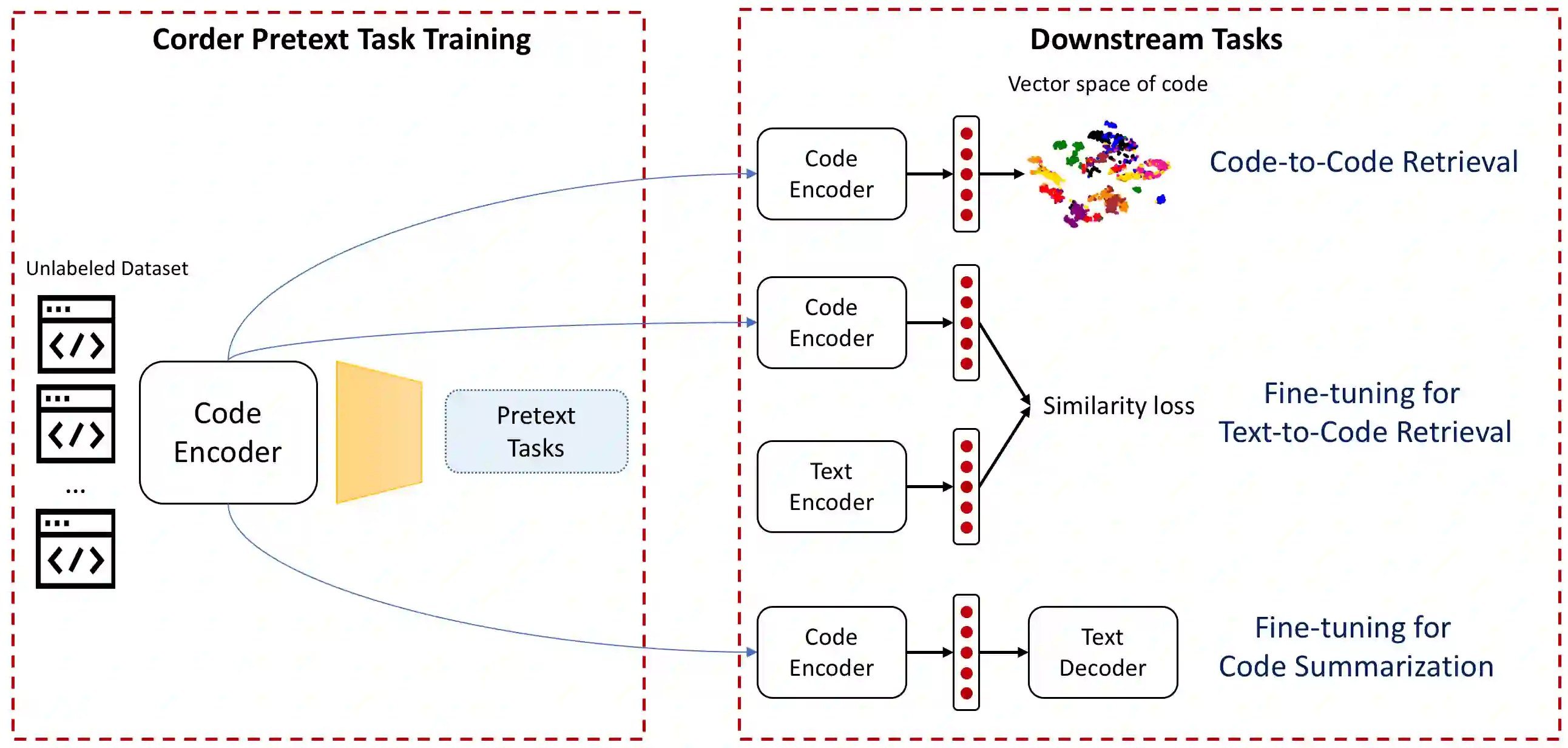 翻译:代码检索和总和是开发者的有用任务, 但对于开发者来说, 建立包含代码合成和语义基本信息的代码索引或摘要也具有挑战性。 要在源代码上构建一个体面的模型, 人们需要从代码托管平台, 如 Github、 Bitbucket 等收集大量数据, 对其进行标签, 并对每个任务进行从头到尾的培训。 这种方法有两个局限性:(1) 培训每个新任务的新模式需要花费时间; (2) 需要大量人力来为单个下游任务标记数据。 为了应对这些限制, 我们提议一个自上而下的模型, 用于在未贴标签的数据中培养代码代表代码的代码模型。 预培训的模型可以用两种方式:(1) 它可以生成代码的矢量代表, 并用于没有贴标签数据的代码的代码检索任务; (2) 可以在一个微调的流程流程流程中使用相同的代码, 如代码和代码的代码等值。 关键创新是, 我们通过要求源代码模型模型模型的对等值进行培训, 要求它识别类似和不固定的版本。