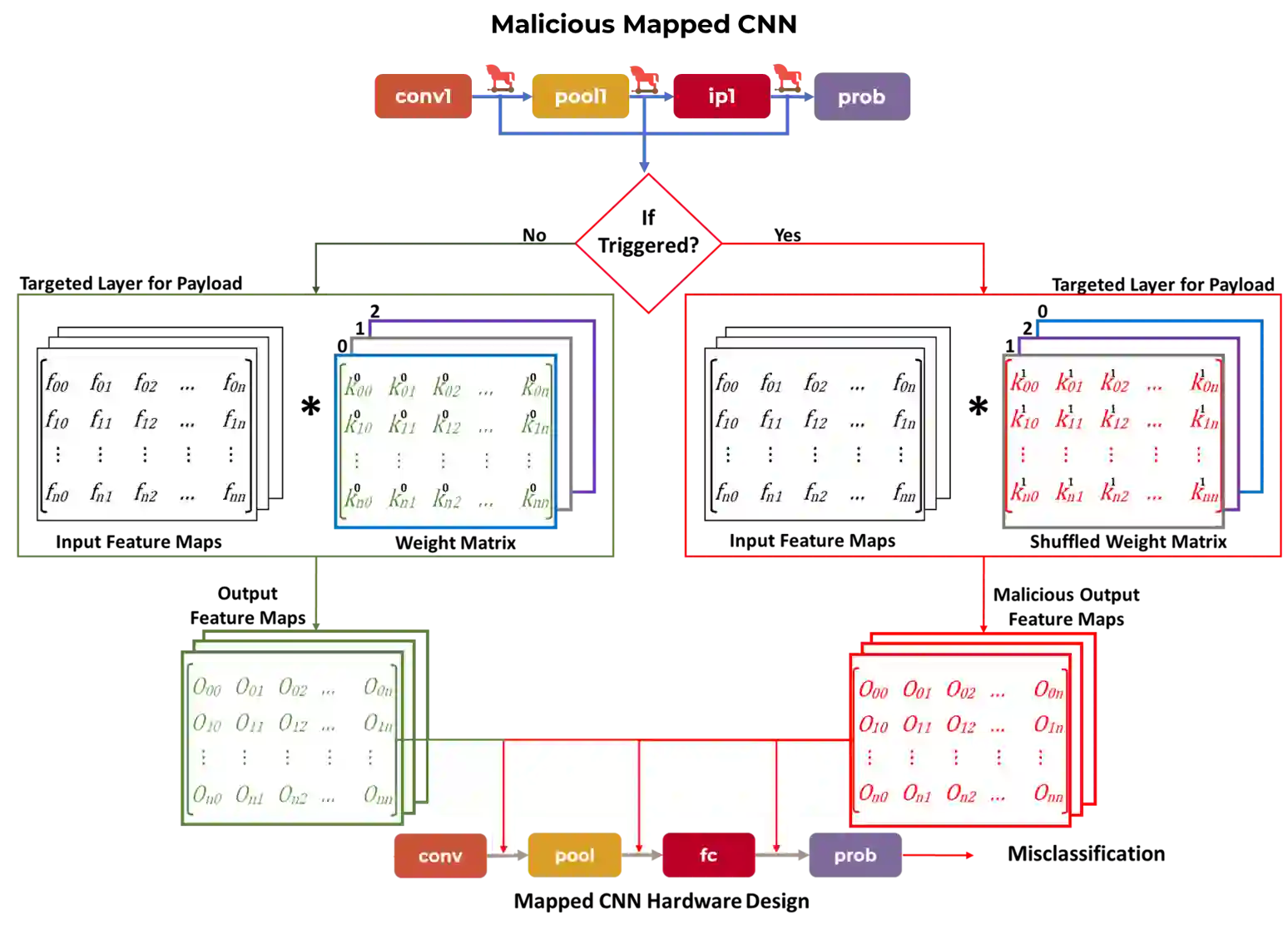 翻译:向资源受限的嵌入系统(如低端FPGAs)部署革命性神经网络(CNN)的保险安全阶段部署 向资源受限的内嵌系统(如低端FPGAs) 的预测安全阶段部署, 是一个日益增长的研究领域。 使用安全的做法, 第三方FPGA设计者可以在初始和最终分类层不知情的情况下获得第三方FPGA设计者的信息。 在这项工作中, 我们证明, 在这种“ 安全” 设计中, 硬件内在攻击(HIA) 仍然有可能。 拟议的HIA插入CNN各层的数学操作中, 该操作在随后所有CNN层次传播错误操作导致分类错误的错误操作, 导致错误分类错误。 攻击是非定期的, 完全随机的, 因而难以检测。 与CNN CNN 层有关的五种不同的攻击情景, 其设计和评估依据的是间接资源和触发速度, 与最初的触发速度。 我们的两个CNNA 结构的结果表明, 在所有攻击情景中, 额外的硬体知识与CNIS 攻击的作者是完全的硬件。