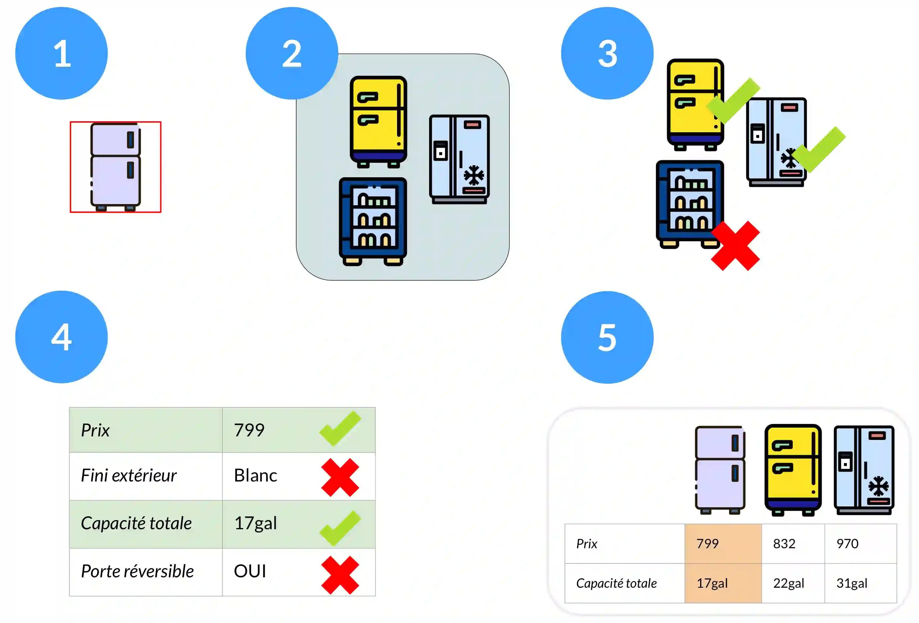 Large eCommerce players introduced comparison tables as a new type of recommendations. However, building comparisons at scale without pre-existing training/taxonomy data remains an open challenge, especially within the operational constraints of shops in the long tail. We present preliminary results from building a comparison pipeline designed to scale in a multi-shop scenario: we describe our design choices and run extensive benchmarks on multiple shops to stress-test it. Finally, we run a small user study on property selection and conclude by discussing potential improvements and highlighting the questions that remain to be addressed.