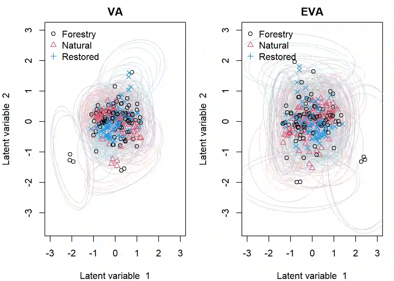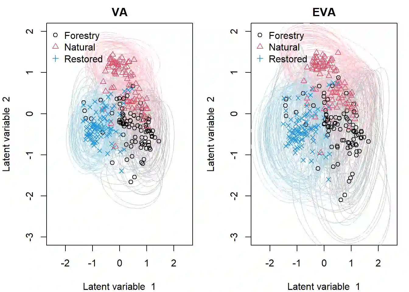 翻译:普通线性潜伏变量模型(GLLVMS)是分析多反应数据的一种方法,近年来在分析生态中多变量丰度数据方面受到相当广泛的欢迎。GLLVMS的主要特征之一是能够处理多种类型的响应,例如(过度分散的)计数、二进制反应、(半-)连续的和比例数据。另一方面,引入潜在的潜在变量带来了一些重大的计算挑战,因为由此产生的可能性功能对于非正常分布的响应来说是一个棘手的组成部分。这刺激了对近似方法的研究,以克服这一整体的多变量数据。GLLLLVMMS的主要特征之一是它们能够处理各种类型的响应,例如(过度分散的)计数、二进制(半)和比例数据。另一方面,引入某些对响应分布和连接功能的组合,我们提出了一种扩大变异方法(EVA)方法,它能够将VA-A的测位应用范围扩大为整体整体,在GLLVMA的精确度数据序列中,我们用GLLVMA的精确的测算的精确性变数功能可以取代GLVA的精确的精确的测序。在GVA的测算中,在GVA的测序中,而任何的测算中,我们能的精确的精确的测算的精确的精确的测算的测算的精确的精确的测值的测值的测算值的测算法,在GVVVVVVVVA的精确性能的测值函数的精确性能功能中可以继续用。