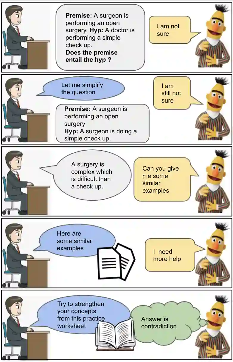翻译:标准NLP任务没有包含若干共同的现实情景,例如要求澄清问题、利用线索、为避免错误的回答而弃权等。任务配置的这种差异妨碍了在现实环境中采用NLP系统。在这项工作中,我们迈出了一步,缩小了这一差距,并提出了一个多阶段任务,模拟典型的人类-人类提问者-答应者互动,如面谈等。具体地说,该系统在各个阶段都得到了问题简化、知识陈述、实例等,以便在缺乏足够信心时改进预测。我们在自然语言推论设置中提出了任务,在自然语言推论中,一个系统在现实环境中和外部(OOOD)的投入上都得到了评价。我们进行全面试验,发现我们任务的多阶段拟订工作导致OOD在第二阶段的1.91%、第第二阶段的54.88%、第3阶段的72.02%和第四阶段的72.02%的通用性工作在标准非指导性预测上得到了进一步改进。然而,我们的任务给NLP研究人员在每个阶段进一步改进ODD绩效带来了重大挑战。