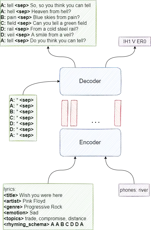 Composing poetry or lyrics involves several creative factors, but a challenging aspect of generation is the adherence to a more or less strict metric and rhyming pattern. To address this challenge specifically, previous work on the task has mainly focused on reverse language modeling, which brings the critical selection of each rhyming word to the forefront of each verse. On the other hand, reversing the word order requires that models be trained from scratch with this task-specific goal and cannot take advantage of transfer learning from a Pretrained Language Model (PLM). We propose a novel fine-tuning approach that prepends the rhyming word at the start of each lyric, which allows the critical rhyming decision to be made before the model commits to the content of the lyric (as during reverse language modeling), but maintains compatibility with the word order of regular PLMs as the lyric itself is still generated in left-to-right order. We conducted extensive experiments to compare this fine-tuning against the current state-of-the-art strategies for rhyming, finding that our approach generates more readable text and better rhyming capabilities. Furthermore, we furnish a high-quality dataset in English and 12 other languages, analyse the approach's feasibility in a multilingual context, provide extensive experimental results shedding light on good and bad practices for lyrics generation, and propose metrics to compare methods in the future.