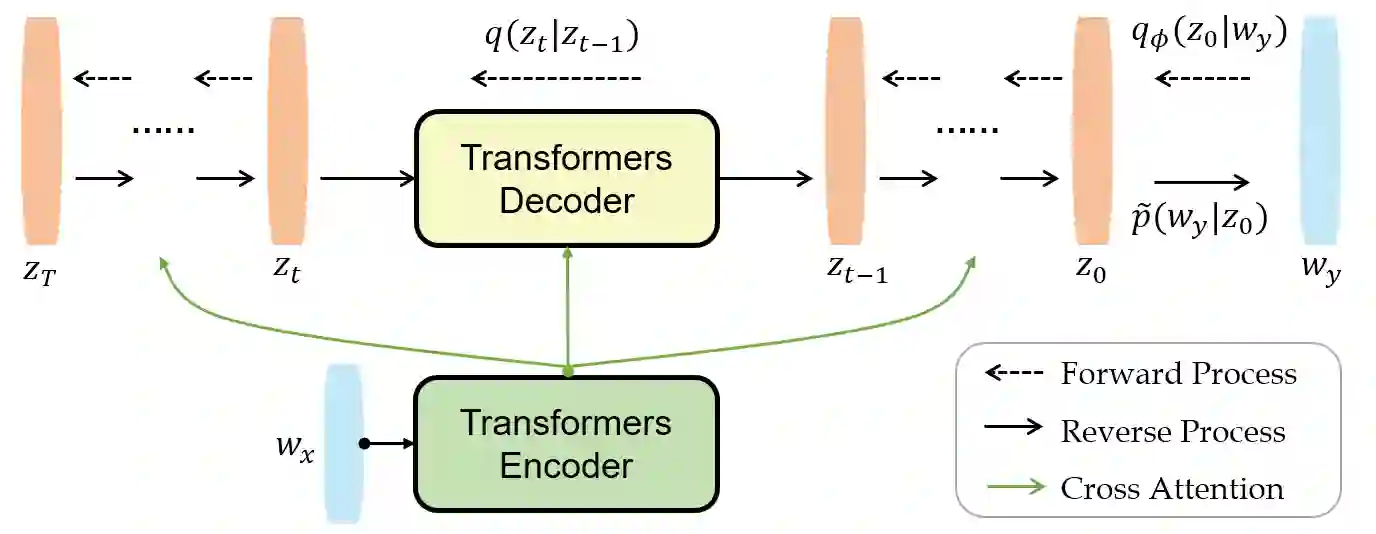 翻译:集成模型是一种新型的基因建模模式,在图像、音频和视频生成方面取得了巨大成功。然而,考虑到文本的离散绝对性,将连续扩散模型扩展至自然语言并非微不足道,而且对文本扩散模型的研究较少。从顺序到顺序的文本生成是基本的自然语言处理专题之一。在这项工作中,我们应用扩散模型来处理顺序到序列的文本生成,并探索扩散模型的优势生成性能能否转移到自然语言域。我们提议SeqDiffuSeq,这是从顺序到顺序生成的文本传播模型。SeqDiffuSeq使用一个编码-解密变异器结构来模拟脱色功能。为了提高生成质量,SeqDiffuSeq将自调技术与新提出的适应性噪声表技术结合起来。适应性噪音表很难在不同时间步骤间均衡分布,并考虑不同位置顺序的标牌的独家噪声表。实验结果表明,在文字质量和时间曲线上,序列到序列生成的良好表现。