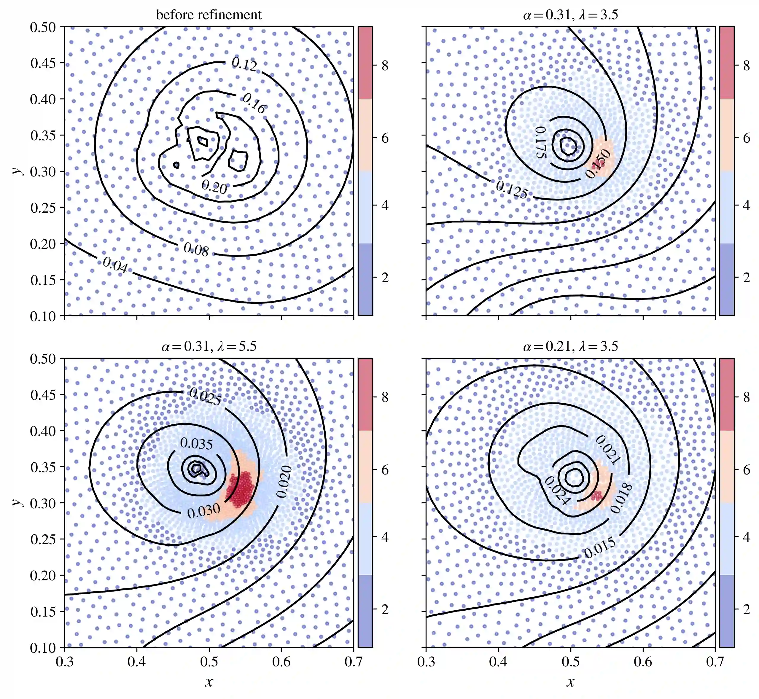 翻译:在估算阶段,我们提出了一个隐含的(IMEX)误差指标,它假定错误与隐含获得的解决方案(从解析阶段)与使用更高的自动排序近似值对手边的PDE进行当地明确重新评价之间存在的差异有关。根据IMEX误差指标,经修订的德克萨斯三步标记战略用于标记支持可变节点密度的前节点定位算法生成的计算节点。最后,在精细阶段,对节点进行重新定位,该方法的顺序在当地重新定义,根据标志阶段的指示,对手边的PDE进行当地明确的重新评价。根据IMEX误差指标,修改的德克萨斯三步标记战略用于标记美元、美元或美元或美元-(de)再精确度的计算节点。最后,在精细阶段,对节点进行重新定位,对方法的顺序进行重新定义,根据标志阶段的指示,对手边的PDE进行当地明确的重新评价。在IMEX误差指标阶段,对二维基的用户方法进行了进一步测试。