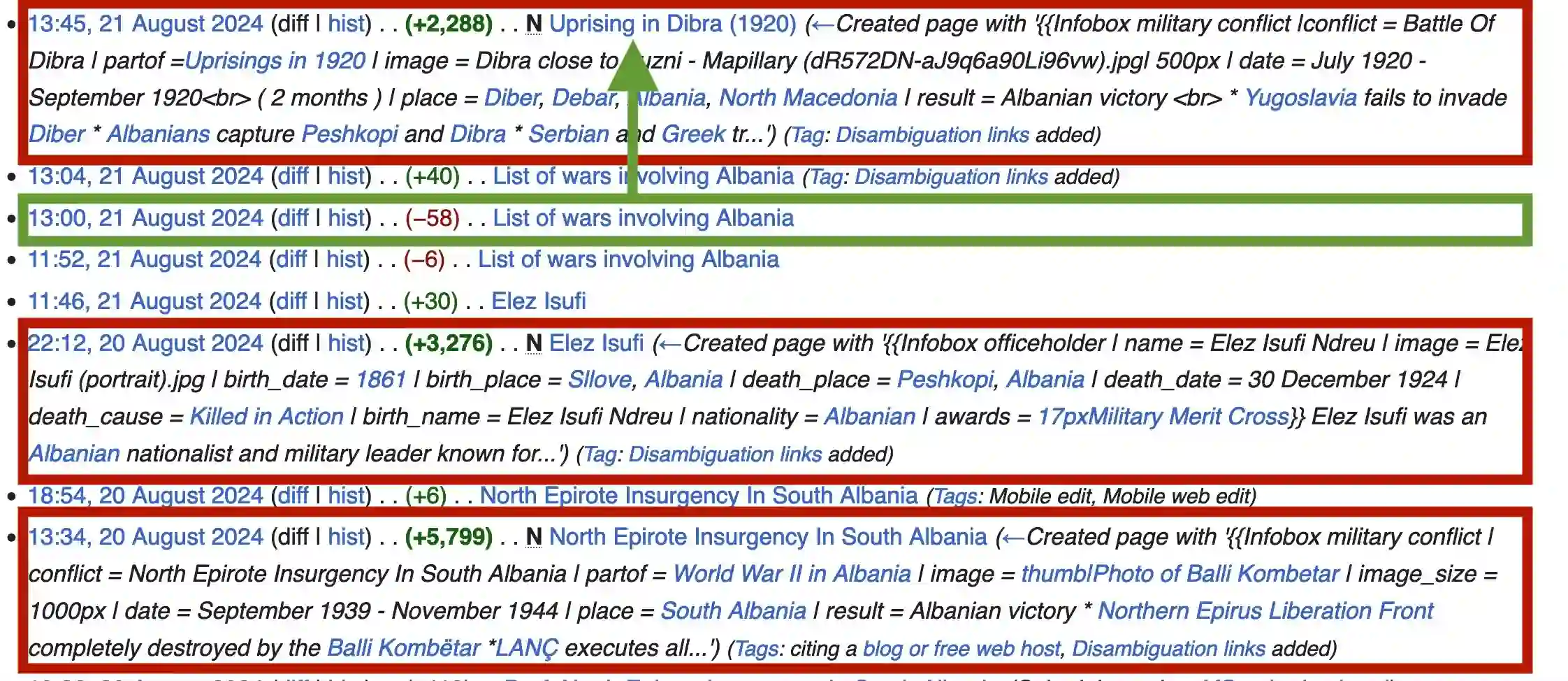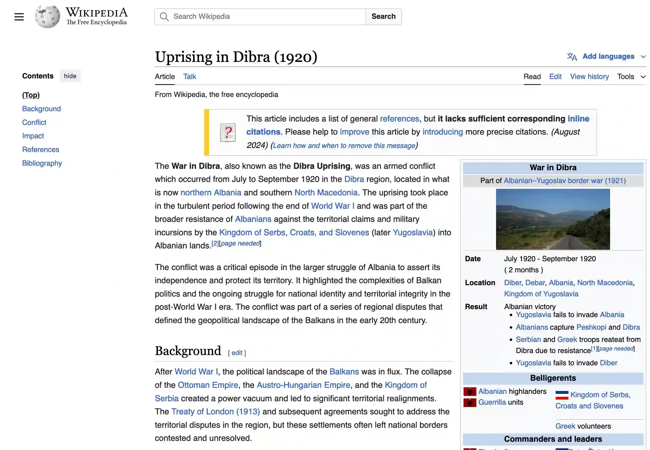 The rise of AI-generated content in popular information sources raises significant concerns about accountability, accuracy, and bias amplification. Beyond directly impacting consumers, the widespread presence of this content poses questions for the long-term viability of training language models on vast internet sweeps. We use GPTZero, a proprietary AI detector, and Binoculars, an open-source alternative, to establish lower bounds on the presence of AI-generated content in recently created Wikipedia pages. Both detectors reveal a marked increase in AI-generated content in recent pages compared to those from before the release of GPT-3.5. With thresholds calibrated to achieve a 1% false positive rate on pre-GPT-3.5 articles, detectors flag over 5% of newly created English Wikipedia articles as AI-generated, with lower percentages for German, French, and Italian articles. Flagged Wikipedia articles are typically of lower quality and are often self-promotional or partial towards a specific viewpoint on controversial topics.