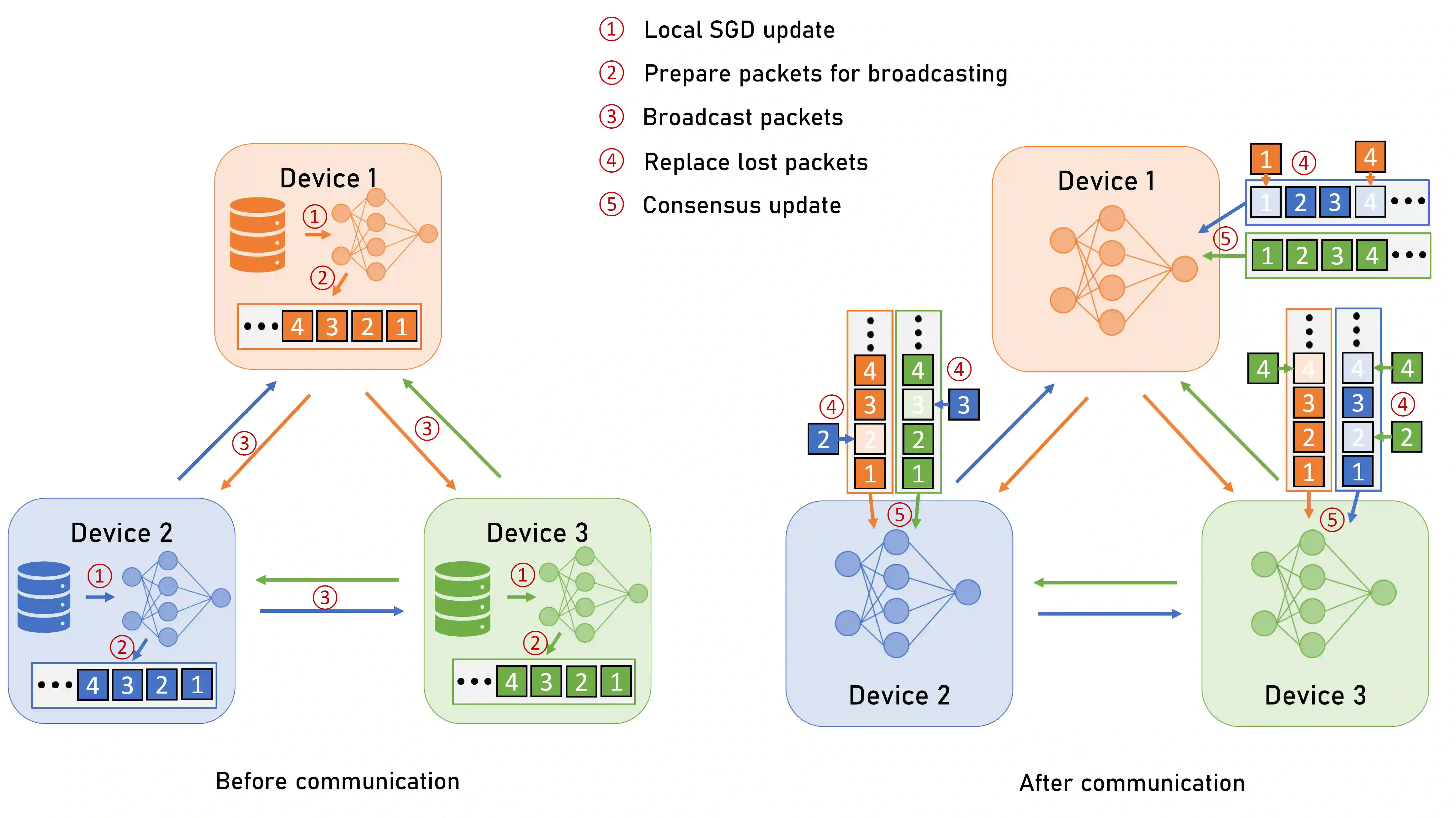 翻译:分散化的联邦学习,从分散化学习中继承下来,使边际设备能够在没有服务器协助的情况下,以同侪和同侪的方式合作进行示范培训,然而,现有的分散化学习框架通常在各种设备之间建立完美的通信,它们可以可靠地交换信息,例如梯度或参数。但是,真实世界的通信网络容易发生包装丢失和传输错误。传输的可靠性随价格而来。通常使用的解决办法是采用可靠的运输层协议,例如传输控制协议(TCP),但这种协议会导致大量的通信间接费用,并减少可以支持的设备的连通性。对于一个有轻度和不可靠的通信协议的通信网络,用户数据图表协议(UDP),我们提议采用一种强有力的分散化的分层梯度梯度下降(SGD)方法,称为Soft-DSGD,以解决不可靠的问题。软式DSGD用部分收到的信息更新模型参数,并根据通信连接的可靠性矩阵优化混合重量。我们证明,拟议的分散化培训系统,即使是不可靠的通信,仍然可以实现相同的混合融合速度。