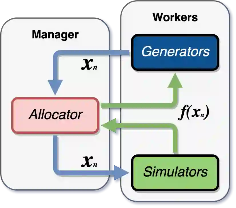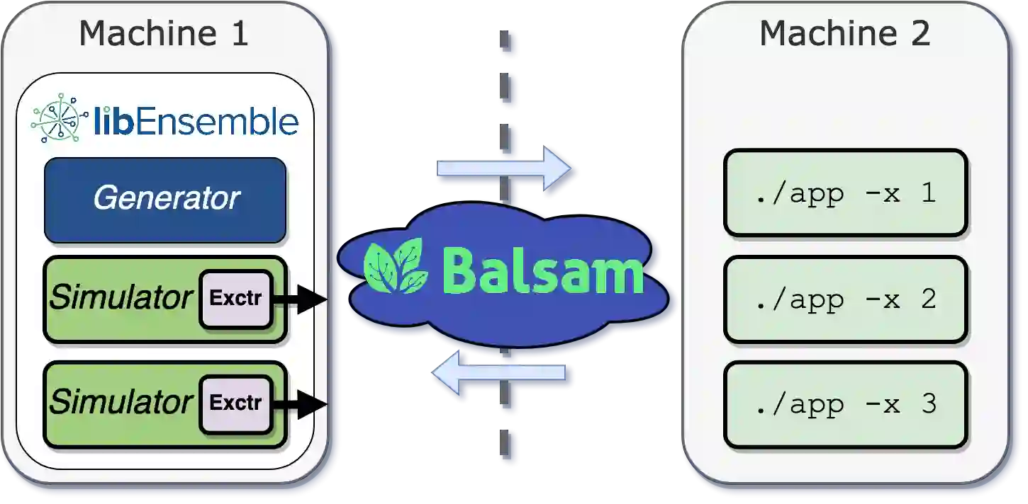 libEnsemble is a Python-based toolkit for running dynamic ensembles, developed as part of the DOE Exascale Computing Project. The toolkit utilizes a unique generator-simulator-allocator paradigm, where generators produce input for simulators, simulators evaluate those inputs, and allocators decide whether and when a simulator or generator should be called. The generator steers the ensemble based on simulation results. libEnsemble communicates between a manager and workers. Flexibility is provided through multiple manager-worker communication substrates each of which has different benefits. These include Python's multiprocessing, mpi4py, and TCP. Multisite ensembles are supported using Balsam or Globus Compute. We overview the unique characteristics of libEnsemble as well as current and potential interoperability with other packages in the workflow ecosystem. We highlight libEnsemble's dynamic resource features: libEnsemble can detect system resources (nodes, cores, and GPUs) and assign these in a portable way. These features allow users to specify resources required for each simulation automatically on a range of systems, including Frontier, Aurora, and Perlmutter. Such ensembles can include multiple simulation types, some using GPUs and others using only CPUs, sharing nodes for maximum efficiency. We demonstrate libEnsemble's capabilities, scalability, and scientific impact via a Gaussian process surrogate training problem for the longitudinal density profile at the exit of a plasma accelerator stage using Wake-T and WarpX simulations. We also describe the benefits of libEnsemble's generator-simulator coupling, which easily exposes to the user the ability to cancel, and portably kill, running simulations. Such control can be directed from the generator or allocator based on models that are updated with intermediate simulation output.