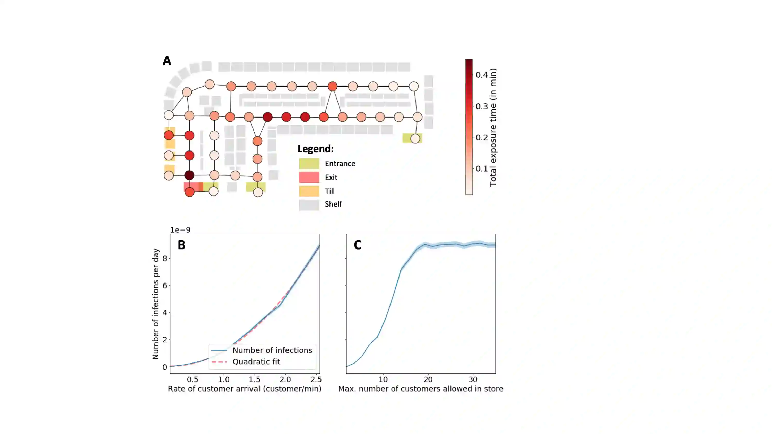 翻译:自2020年3月初COVID-19爆发以来,联合王国超市实施了不同的政策,以减少商店内病毒传播,保护顾客和工作人员,例如限制商店内的最大客户数量,改变商店布局,或强制实施表面覆盖政策。为了定量评估这些缓解方法,我们根据客户在感染性顾客附近花费的时间,以简单的病毒传播模式为基础,在超市(我们代表一个网络)制定一个基于代理的客户流动模式。我们将我们的模型应用于合成商店和购物数据,以表明人们如何利用我们的模型估计由于商店内人与人接触而感染的人数,以及如何模拟不同的商店干预措施。源代码公开发布在https://github.com/fabiannying/covid19-超级市场胶囊中。我们鼓励零售商利用该模型找到最有效的商店政策,减少商店内的病毒传播,从而保护顾客和工作人员。