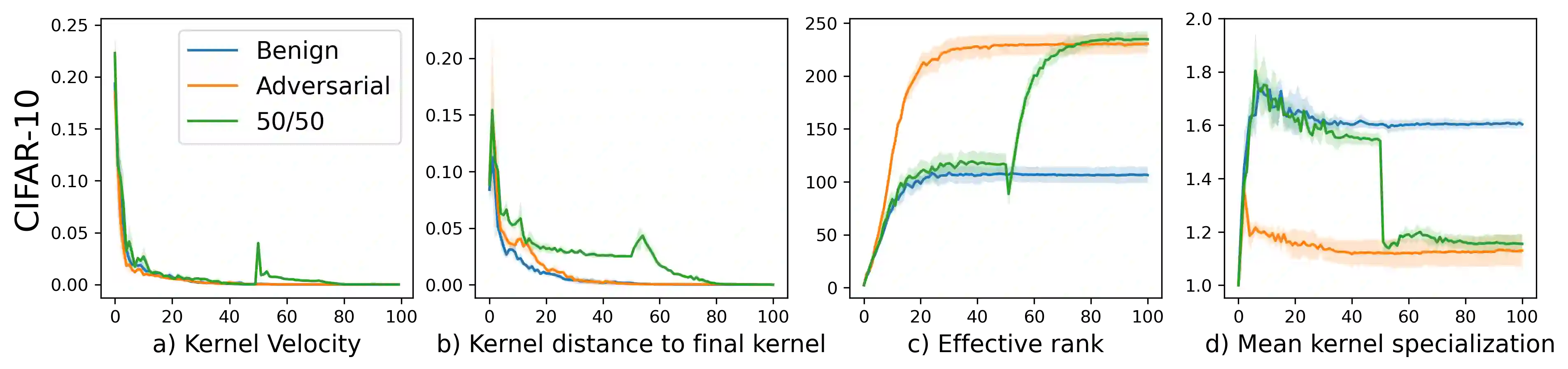 翻译:现代深层学习所面临的两个关键挑战是降低深层次网络对对抗性攻击的脆弱性,并理解深层次学习的概括能力。但是,在有限的宽度方面,有证据表明,在第二阶段培训(核心学习)之前的早期(核心学习),已经制定了许多防御战略,最常见的是反向训练(AT)。在第二个挑战方面,出现的主要理论之一是神经唐氏内核内核(NTK),这是在无限宽限范围内对神经网络行为的描述。在这个限度内核内核被冻结,基本特征图是固定的。但是,在有限的宽度方面,有证据表明,在第二阶段培训(核心学习)之前的早期阶段(核心学习)会发生学习(核心学习),在第二阶段,内核内核内核内核训练(核心内核内核内核内核内核内核)的早期对抗性行为(核心内核内核内核内核内核内核内核内核内核)的演变过程,在标准下,我们通过对核内核内核内核内核内核内核的高级训练,可以找到一种稳定的训练的顶性训练。