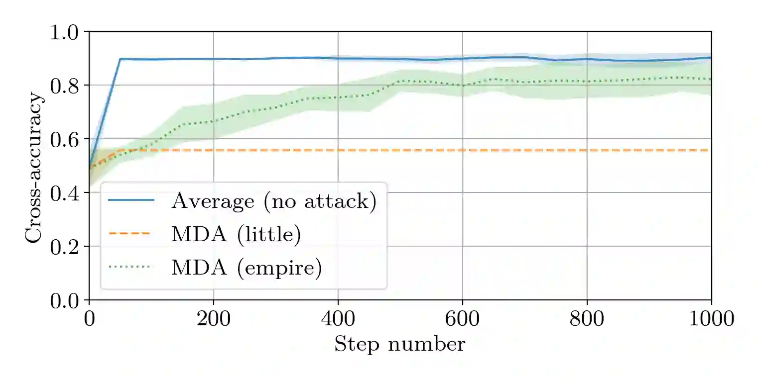 翻译:本文探讨了Byzantine应变能力与机器学习隐私相结合的问题。 具体地说,我们研究的是,如果分散实施著名的Stochatic Gradientle Grounds(SGD)学习算法,在有区别的隐私(DP)和$(alpha,f)美元-Byzantine两种情况下都是可行的。 据我们所知,这是从理论角度解决这一问题的第一个工作。我们分析的一个重要发现是,对这两个(似乎)正统问题的典型方法不相容。更确切地说,我们表明,这些技术的直接构成使得由此产生的SGD算法的保障不取决于ML模型的参数数量,使得大型模型的培训实际上不可行。我们通过在公开的数据集上进行数字实验来验证我们的理论结果;表明,确保DP和Byzantine同时具有复原力是不切实际的。