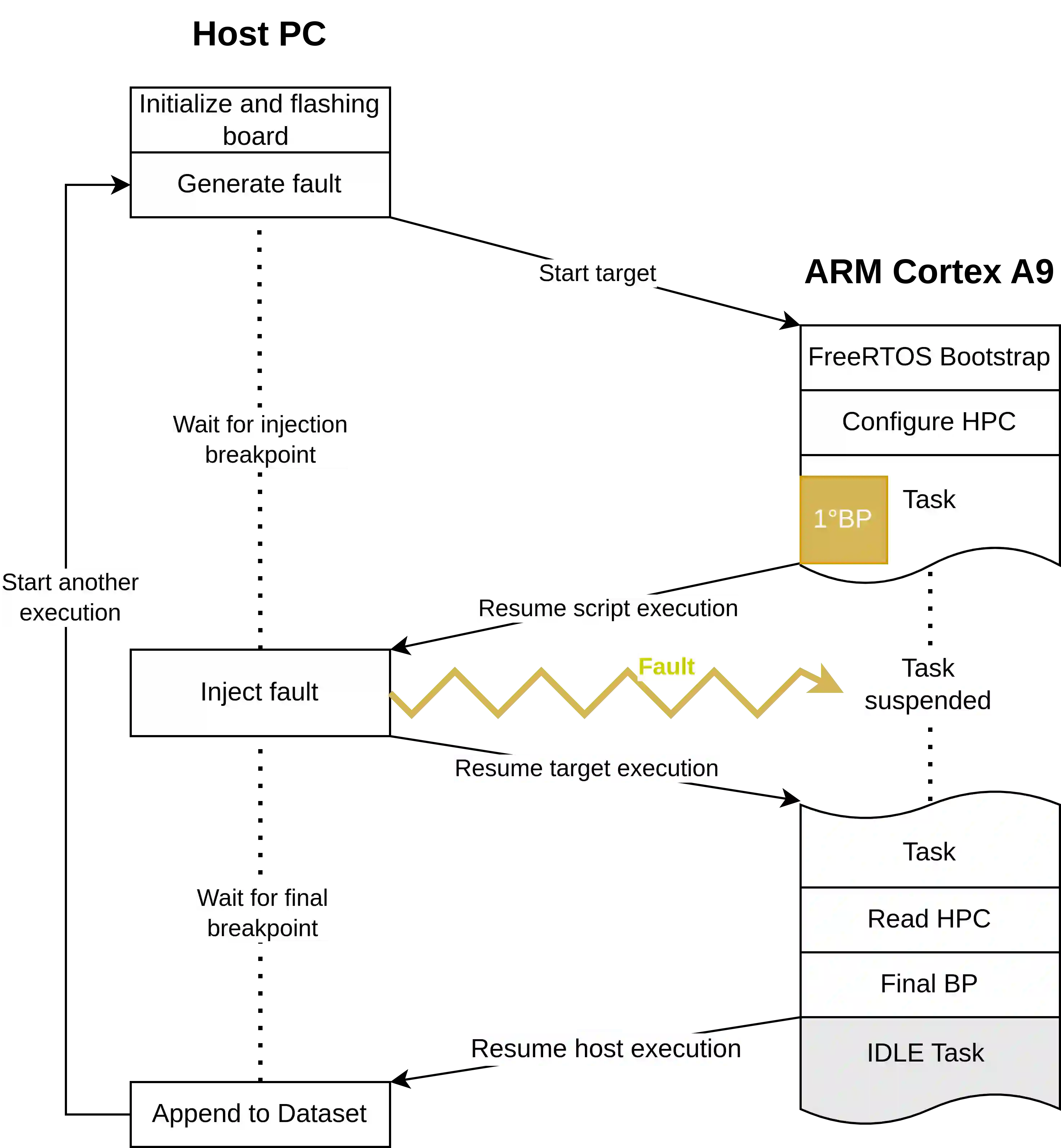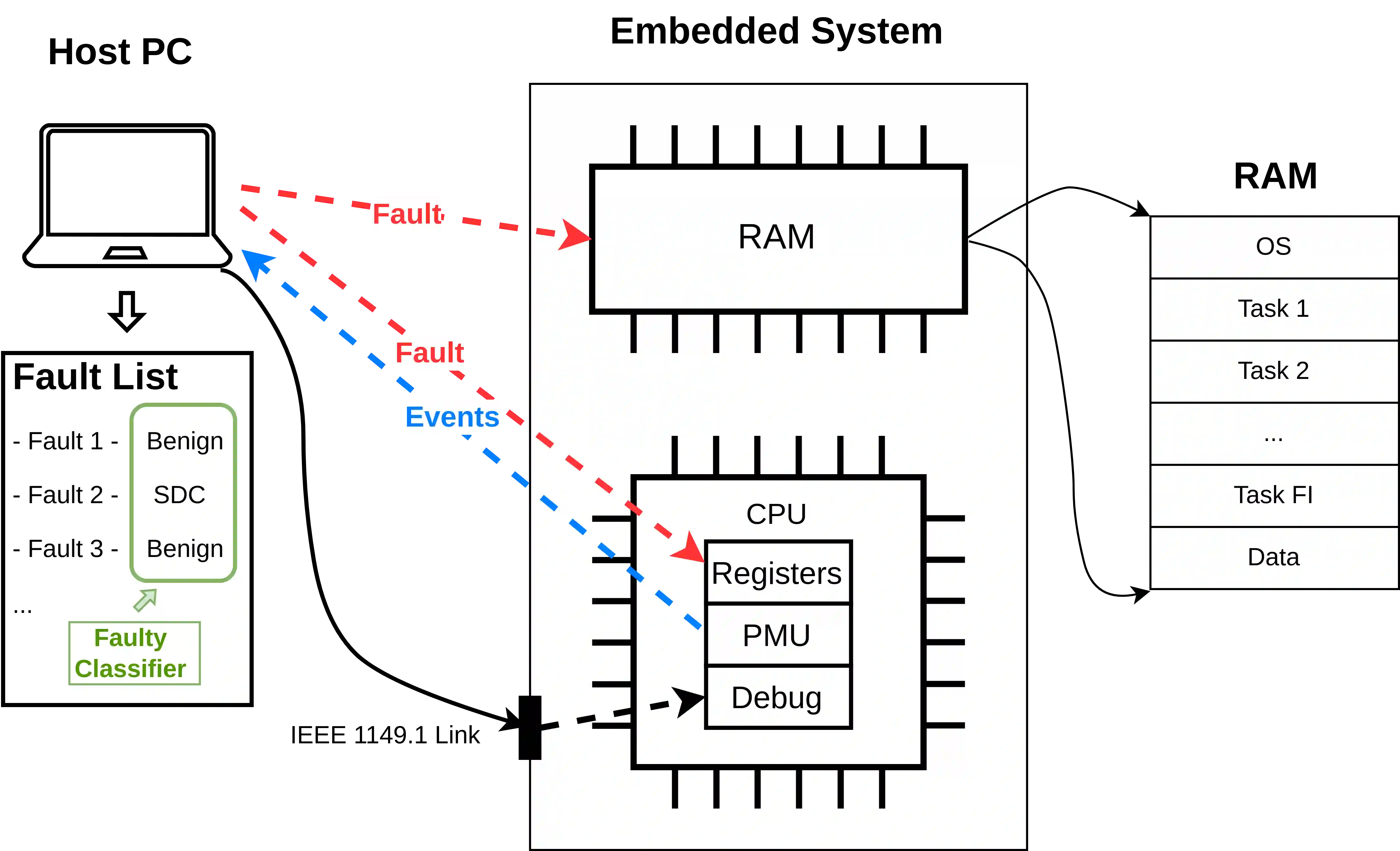 In contemporary times, the increasing complexity of the system poses significant challenges to the reliability, trustworthiness, and security of the SACRES. Key issues include the susceptibility to phenomena such as instantaneous voltage spikes, electromagnetic interference, neutron strikes, and out-of-range temperatures. These factors can induce switch state changes in transistors, resulting in bit-flipping, soft errors, and transient corruption of stored data in memory. The occurrence of soft errors, in turn, may lead to system faults that can propel the system into a hazardous state. Particularly in critical sectors like automotive, avionics, or aerospace, such malfunctions can have real-world implications, potentially causing harm to individuals. This paper introduces a novel fault injector designed to facilitate the monitoring, aggregation, and examination of micro-architectural events. This is achieved by harnessing the microprocessor's PMU and the debugging interface, specifically focusing on ensuring the repeatability of fault injections. The fault injection methodology targets bit-flipping within the memory system, affecting CPU registers and RAM. The outcomes of these fault injections enable a thorough analysis of the impact of soft errors and establish a robust correlation between the identified faults and the essential timing predictability demanded by SACRES.