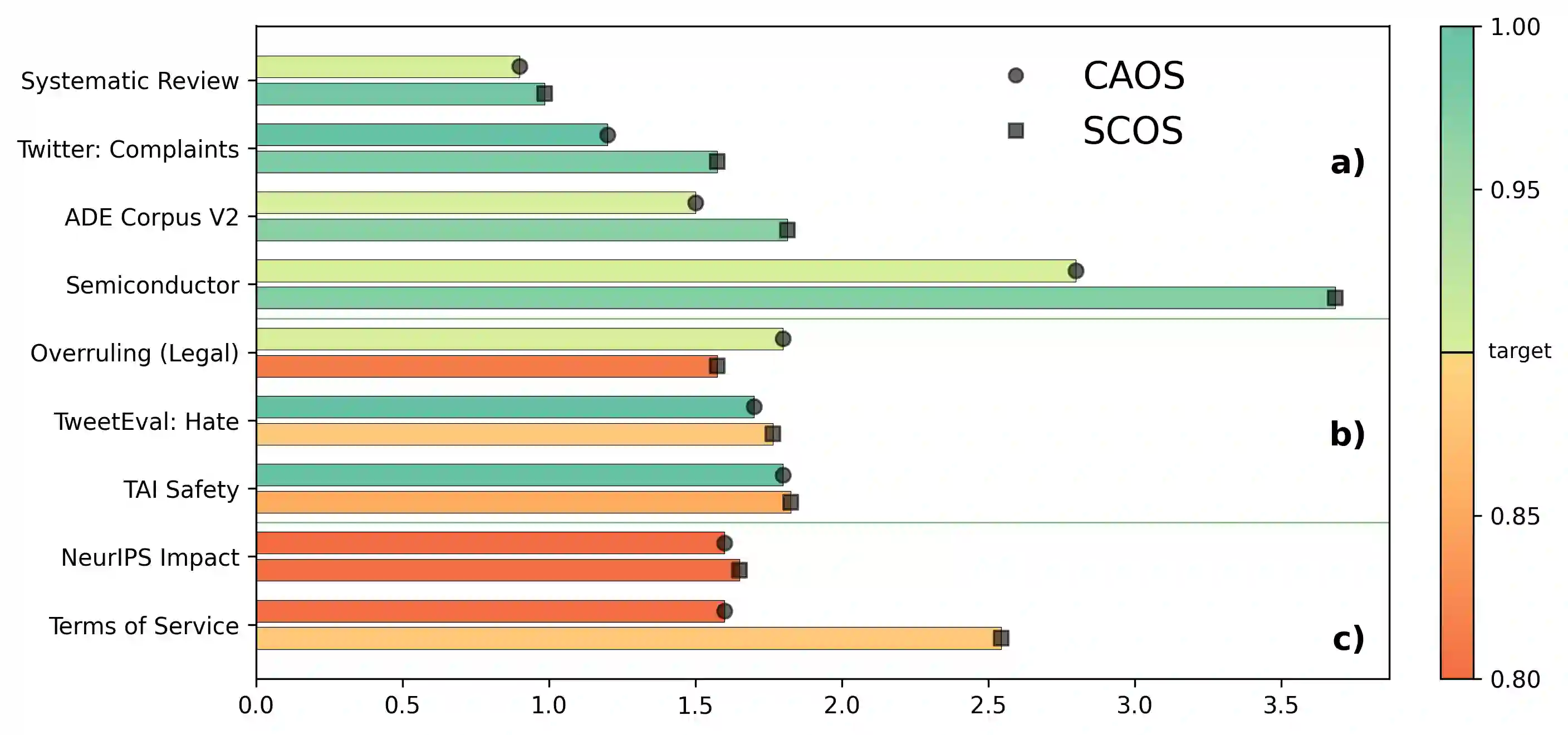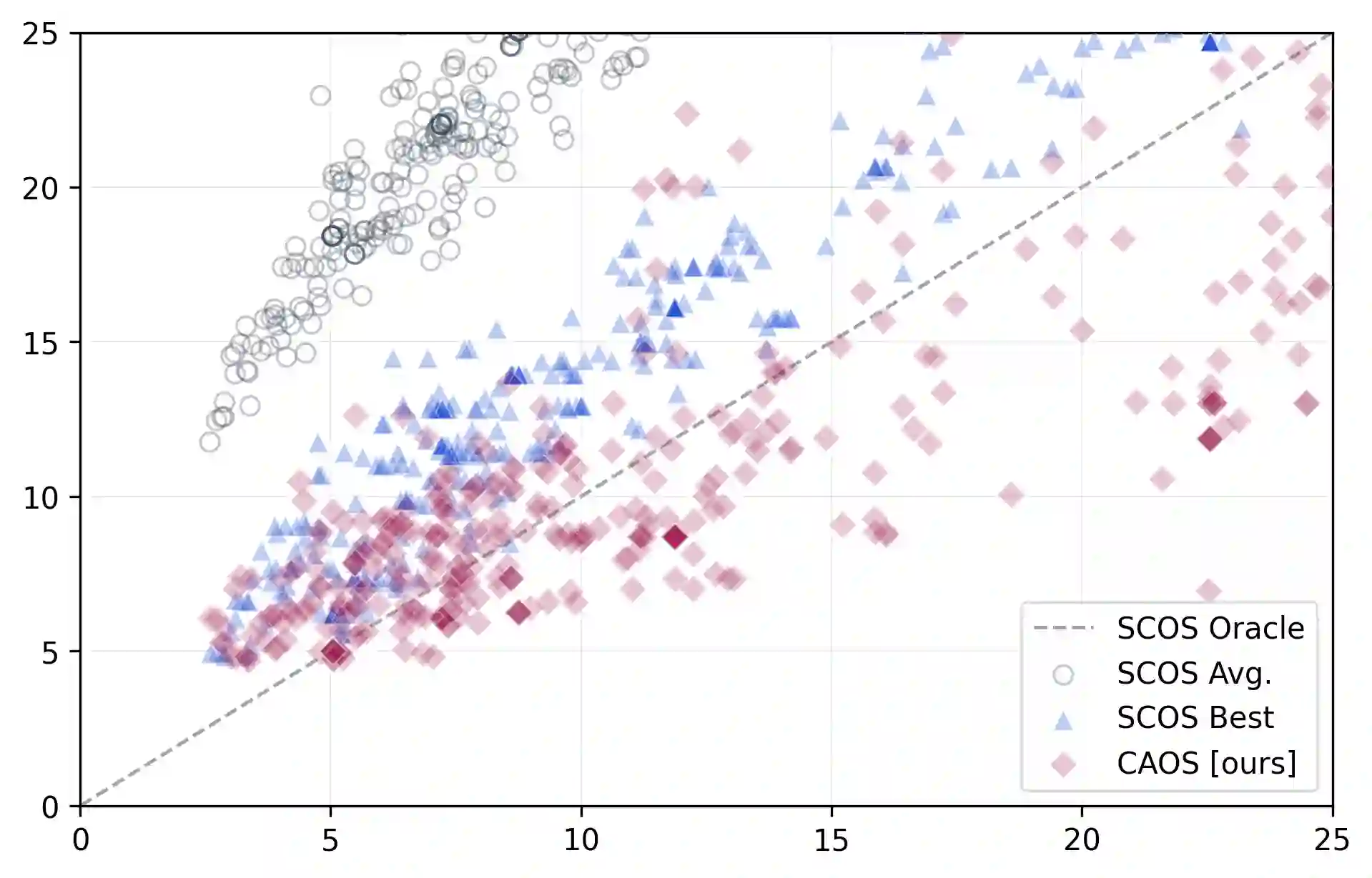 翻译:一次性预测使得预训练基础模型仅需一个标注样本即可快速适应新任务,但缺乏严格的不确定性量化方法。虽然保形预测能提供有限样本覆盖保证,标准的分割保形方法在一次性场景中因数据分割和依赖单一预测器而效率低下。本文提出一次性预测器的保形聚合(CAOS),该保形框架自适应地聚合多个一次性预测器,并采用留一校准方案以充分利用稀缺标注数据。尽管违背经典可交换性假设,我们通过单调性论证证明了CAOS仍能实现有效的边际覆盖。在一次性人脸关键点检测和RAFT文本分类任务上的实验表明,CAOS在保持可靠覆盖的同时,产生的预测集显著小于分割保形基线方法。