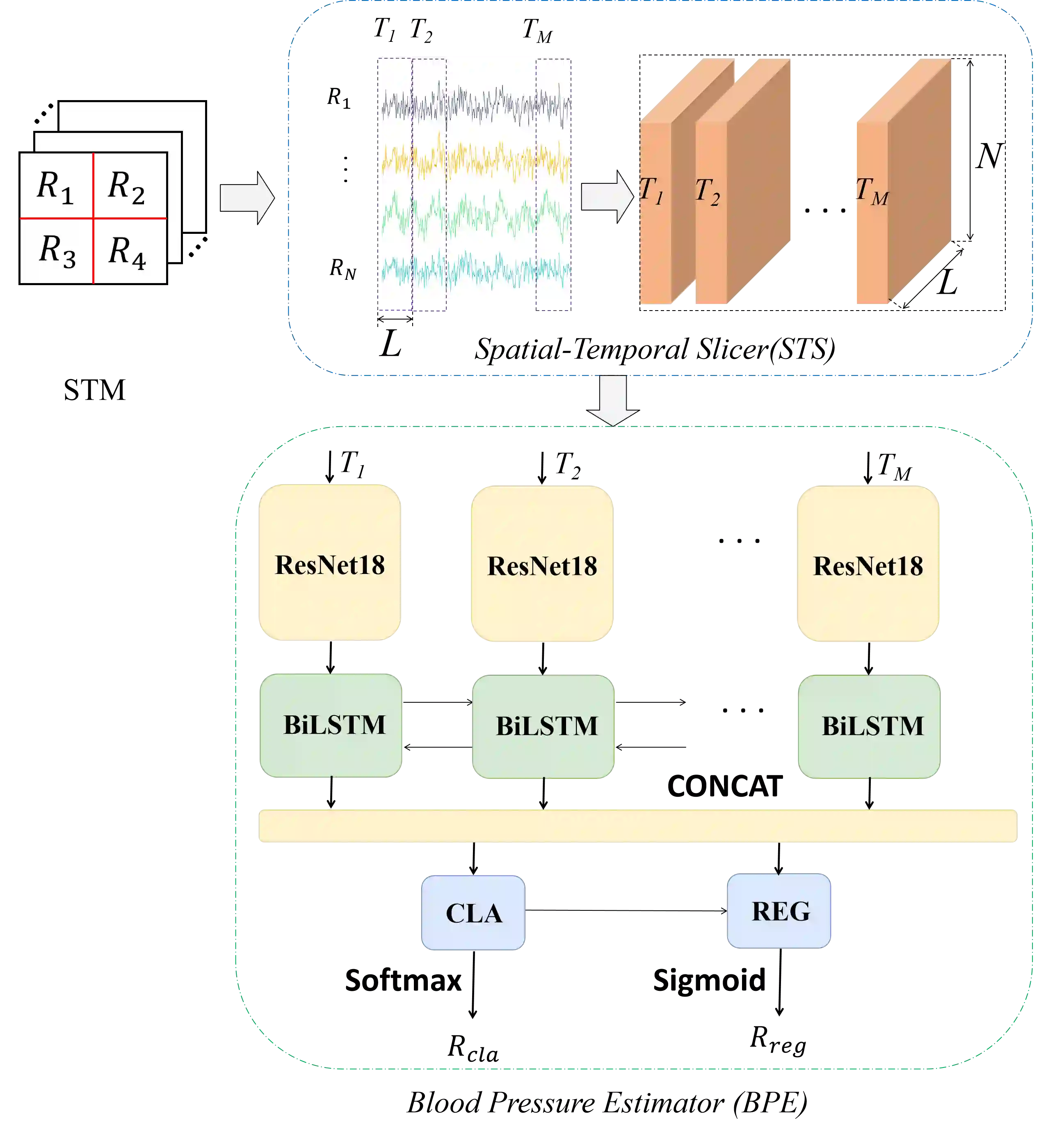 翻译:传统上,血压数据主要通过接触传感器获得,这些传感器需要高维护,对一些人(例如烧伤病人)可能不方便和不友好。在本文中,我们建议基于脸部视频建立一个高效的非接触血压测量网络。首先,提议了一个创新的过度抽样培训战略,以处理不平衡的数据分布。输入视频序列首先正常化,并转换为我们提议的YUVT色空间。然后,spatio-时空切片器将其编码为多多多面面体spatio-时空绘图。最后,由一系列骨干网络和LSTM组成的特征提取器符合高方位特征,用于血压分类,以定位血压间隔。血压计算器将地貌提取器和血压分类器的结果结合起来,以输出最后的血压值。我们在MSE-HR数据集中测试了BPM-Net,由一系列骨质血压和LSTMT构成的MAE提取到12.35毫米MHAL-MHAMA的当前血液压力测试结果。