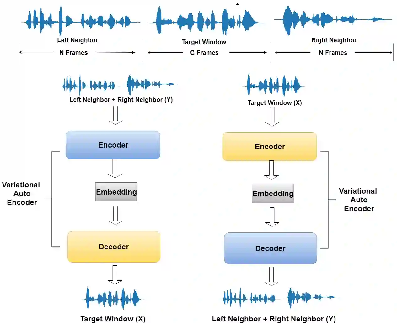 翻译:将声学信息嵌入固定长度表示法对于语音和音频技术的一系列应用都有意义。 提出了两种通过模拟声学背景生成声学嵌入器的新颖、 不受监督的方法。 第一种方法是背景因素合成编码器, 使编码器/解码器框架中的编码器经过培训, 从周围音频框中提取联合要素, 以最佳生成目标输出。 第二种方法是背景因素联合要素分析编码器, 对编码器进行培训, 以分析来源信号中与邻近音频最相关的联合要素。 为了评估我们方法与先前工作相比的有效性, 开展了两项任务 -- -- 电话分类和语音识别 -- 并测试了不同的TIMEX数据集。 实验结果显示, 一项拟议方法超越了电话分类基线, 得出了74.1%的分类准确度。 在使用额外外部数据进行培训时, 可以在电话分类和语音识别任务方面另外获得3%的改进。
