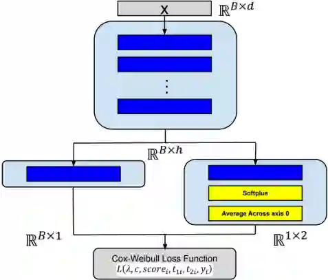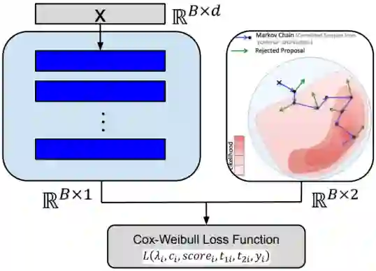 翻译:我们建议通过DeepSurv [2] 等神经网络,将武器系统特征(如武器系统制造商、部署时间和地点、储存时间和地点等)纳入一个参数化的Cox-Weibull[1][1]可靠性模型,以改进预测性维护;同时,我们开发一种替代的Bayesian模型,将Weibull参数与神经网络进行参数化,并采用蒙特-卡洛(MC)投射等辍学方法进行比较;由于武器系统测试中的数据收集程序,我们采用了一种新颖的间歇性对日志相似性,其中包括Monte-Carlo Markov链(MC)[3]在梯度下降优化期间对Weibull参数进行取样。我们比较了接收器操作器曲线(AUSC)、精确-回调(PR) AUC)和F分数等分类指标,以显示我们的模型一般超过XGBoost等传统强型模型和目前的标准条件Wibull概率估计模型。</s>
