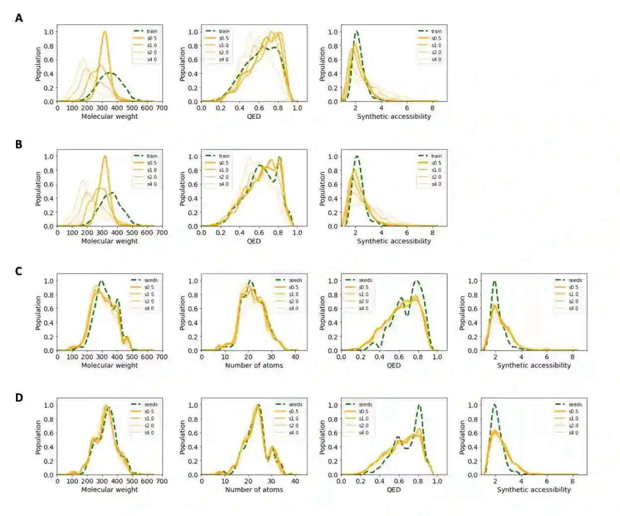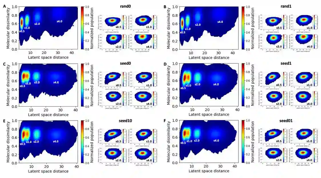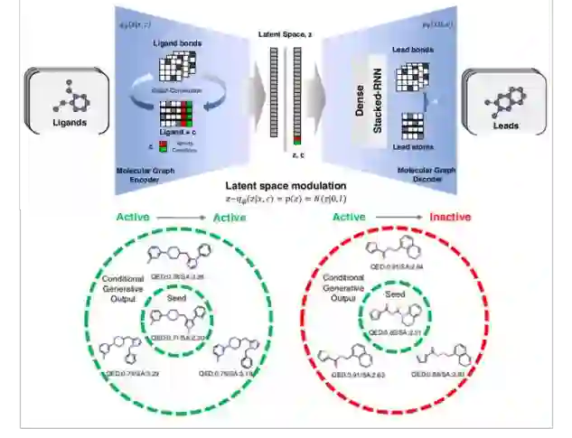 翻译:将深层次学习应用于基因分子设计,显示了加速铅序列开发的早期前景;然而,关于培训、数据集和种子偏见等因素如何影响该技术对医药和计算化学家的效用,仍然存在一些问题。在这项工作中,我们分析了种子和培训偏见对活动条件图形化变异自动编码器(VAE)产出的影响。利用与多巴胺D2受体相对的大规模标签数据集,我们的图基基因模型显示在创造所需条件活动和生成分子中有利的无附加条件物理特性方面优异。我们采用了一种活动交换方法,允许激活、停用或保留分子种子的活动,我们运用独立的深层学习分类器来核查基因化结果。总体而言,我们发现在一系列潜空取样程序中噪音、分子种子和培训设置选择之间的关系,为实用的由AI驱动的分子生成提供了重要的洞察力。