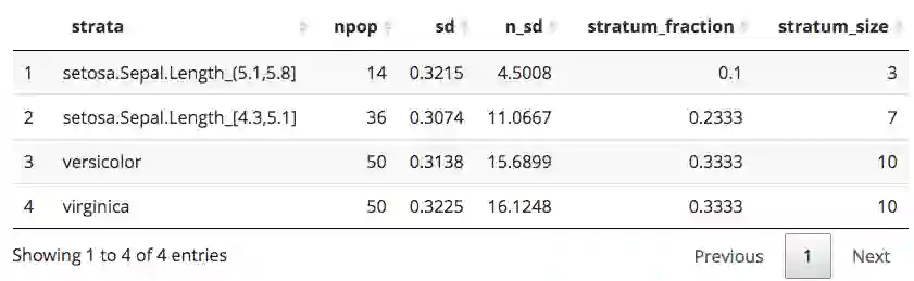 翻译:R包最佳方案提供一系列功能,高效率地简化简单到复杂的调查中抽样设计过程,使用户能够根据辅助共变值或四分位数对层切分点进行互动界定和调整,利用Neyman或Wright分配,根据每个层分配最佳样本数量进行适应性计算,并根据分层抽样设计选择具体的样本标识。我们利用现实的流行病学研究实例,展示如何最优化地便利设计和实施R调查的有效工作流程。尽管R包适合两或三阶段设计下的多波抽样,但对于任何抽样调查都可能有用。