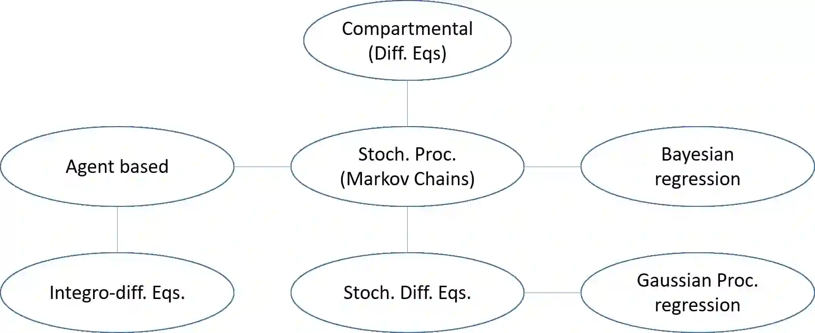 翻译:文章探索了用于理解传染病演变的数学模型。 最广为人知的一组模型是基于一组差异方程式的条块式参数。 但是这些模型并不是唯一的模型。 本次审查访问的是许多不同的模型家庭。 此外, 我们展示这些家庭, 不是无关的实体, 而是遵循一个共同的线索, 其中模型的问题或假设通过另一个模型解决或普遍化。 这样, 我们就能理解它们的关系、 假设、 简化, 以及最终的局限性。 在当前Covid19年大流行的情况下, 我们特别注重传播预测。 我们展示了在进行现实预测时遇到的困难。 一般来说, 它们只是接近一个生物和社会复杂程度大得多的现实。 特别麻烦的是巨大的潜在变异性、 问题的时间变异性, 以及难以估计一个忠实模型所需要的参数。 此外, 我们还会看到这些模型具有多重的实用性, 意味着系统参数中的小错误仍然在预测中产生巨大的不确定性。 托科或代理人模型可以克服一些不切实际的模型, 这些模型在精确的变异性模型上, 它们的变异性模型是它们的精确性模型, 它们作为主要变异性模型的变异性模型, 也是其精确的精确的变异性模型, 它们的精确的, 它们的精确的变异性模型是其精确的, 的, 它们的精确的精确的, 它们是它们的精确的, 其精确的变异性变变变变的变的, 。