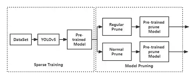 One-stage algorithm have been widely used in target detection systems that need to be trained with massive data. Most of them perform well both in real-time and accuracy. However, due to their convolutional structure, they need more computing power and greater memory consumption. Hence, we applied pruning strategy to target detection networks to reduce the number of parameters and the size of model. To demonstrate the practicality of the pruning method, we select the YOLOv5 model for experiments and provide a data set of outdoor obstacles to show the effect of model. In this specific data set, in the best circumstances, the volume of the network model is reduced by 49.7% compared with the original model, and the reasoning time is reduced by 52.5%. Meanwhile, it also uses data processing methods to compensate for the drop in accuracy caused by pruning.