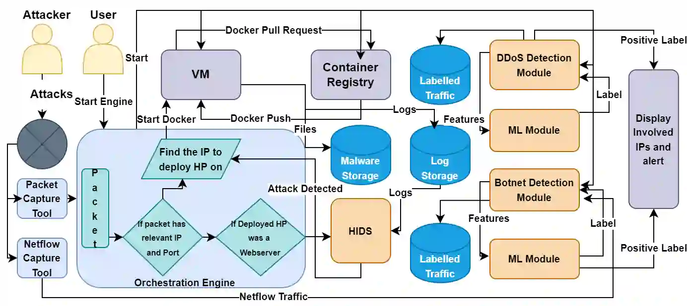 Cyber Security is a critical topic for organizations with IT/OT networks as they are always susceptible to attack, whether insider or outsider. Since the cyber landscape is an ever-evolving scenario, one must keep upgrading its security systems to enhance the security of the infrastructure. Tools like Security Information and Event Management (SIEM), Endpoint Detection and Response (EDR), Threat Intelligence Platform (TIP), Information Technology Service Management (ITSM), along with other defensive techniques like Intrusion Detection System (IDS), Intrusion Protection System (IPS), and many others enhance the cyber security posture of the infrastructure. However, the proposed protection mechanisms have their limitations, they are insufficient to ensure security, and the attacker penetrates the network. Deception technology, along with Honeypots, provides a false sense of vulnerability in the target systems to the attackers. The attacker deceived reveals threat intel about their modus operandi. We have developed a Security Orchestration, Automation, and Response (SOAR) Engine that dynamically deploys custom honeypots inside the internal network infrastructure based on the attacker's behavior. The architecture is robust enough to support multiple VLANs connected to the system and used for orchestration. The presence of botnet traffic and DDOS attacks on the honeypots in the network is detected, along with a malware collection system. After being exposed to live traffic for four days, our engine dynamically orchestrated the honeypots 40 times, detected 7823 attacks, 965 DDOS attack packets, and three malicious samples. While our experiments with static honeypots show an average attacker engagement time of 102 seconds per instance, our SOAR Engine-based dynamic honeypots engage attackers on average 3148 seconds.