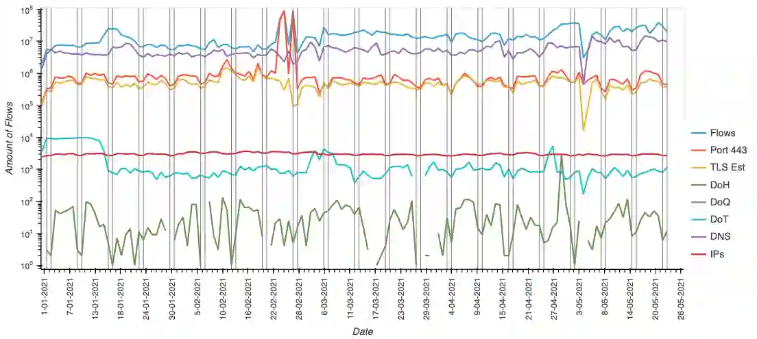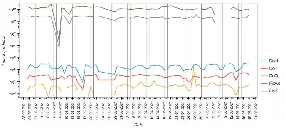 翻译:自2016年以来,对DNS的加密建议已经提出,但是其采用还没有经过全面研究。这一研究测量了2021年初三个不同组织采用DoH(HTPS上的DNS)、DT(TLS上的DNS)和DQ(QuIC上的DNS)的时间为5个月,覆盖全球的3个不同组织2021年年初,对DH(DNS)和DQ(QUIC上的DNS)目前采用的时间为5个月。通过比较总价值、每个用户请求的数量以及交通的季节性,我们有可能获得目前的采用趋势。此外,我们积极扫描互联网,为仍然未知的工作 DH服务器,并将它们与已知的DoH服务器的新编目录进行比较。我们的结论是,尽管在2021年头5个月中,尽管有所增长,但有统计上的重要证据表明,DoH、DoT和DoQ的互联网平均流量仍然是固定不变的。然而,我们发现,DoH服务器的数量仍然未知而且随时可以使用,增加了4倍。这些测量表明,尽管加密的DNS数量目前没有增加,但可能很快会与那些未知的DoH服务器用于友好和恶意目的。