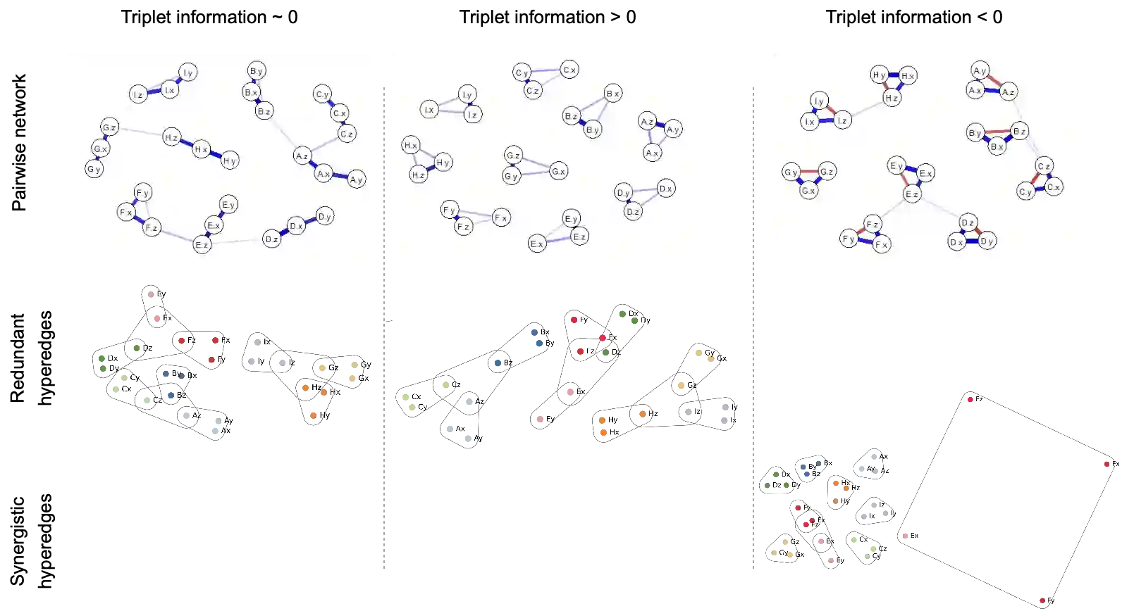 翻译:心理网络方法提议将症状或问卷项目视为相互关联的节点,在它们之间建立联系,反映对称的统计依赖性,评价了跨部门、时间序列或小组数据。这些网络是评估节点/指标相互作用和相对重要性的既定方法,为诸如要素分析等其他方法提供了重要的补充。然而,仅仅将模拟作为对称关系,可能会忽视由三个或三个以上变数组成的群体以较高层次相互依存形式共享的潜在关键信息。为了克服这一重要的局限性,我们在此提议一个信息理论框架,其依据是作为心理计量模型的超镜。由于超镜的边缘能够将几个节点结合在一起,因此这一扩展可以更充分地反映各组心理变量之间可能存在的相互作用。我们的结果表明,心理计量超镜可以突出模拟或最新、再分析的心理计量数据集中有意义的冗余和协同互动。总体而言,我们的框架扩展了当前的网络方法,同时导致新的方法,评估其核心数据不同于其他方法,扩展了心理计量工具箱,打开了未来调查的前景。