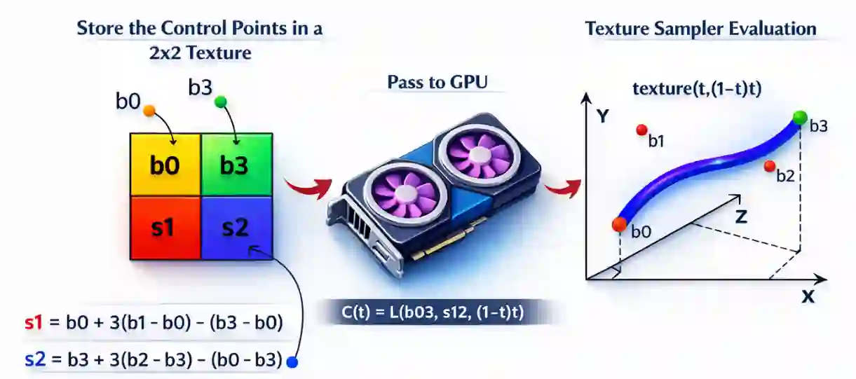 We present a texture-based technique for evaluating Bézier curves on the GPU that leverages fixed-function linear texture interpolation hardware. By offloading curve evaluation to the texture interpolator, this approach can improve performance in compute-bound GPU workloads. The method can also be used naturally for Bézier surfaces and volumes and extends to advanced curve types such as B-splines, NURBS, and both integral and rational polynomials. We show how Seiler interpolation fits into this framework to improve efficiency. We also compare performance and accuracy against curves evaluated as polynomials in shader code.