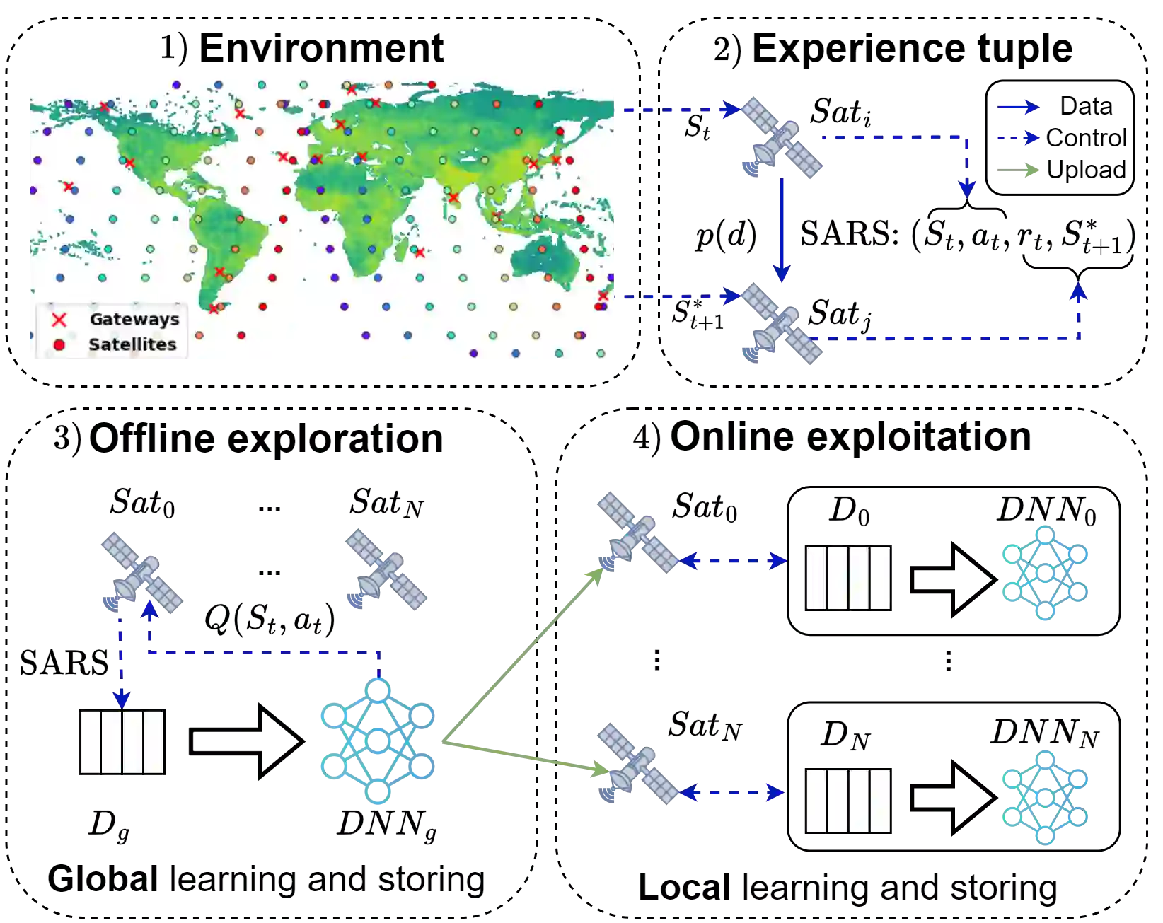 This paper introduces a Multi-Agent Deep Reinforcement Learning (MA-DRL) approach for routing in Low Earth Orbit Satellite Constellations (LSatCs). Each satellite is an independent decision-making agent with a partial knowledge of the environment, and supported by feedback received from the nearby agents. Building on our previous work that introduced a Q-routing solution, the contribution of this paper is to extend it to a deep learning framework able to quickly adapt to the network and traffic changes, and based on two phases: (1) An offline exploration learning phase that relies on a global Deep Neural Network (DNN) to learn the optimal paths at each possible position and congestion level; (2) An online exploitation phase with local, on-board, pre-trained DNNs. Results show that MA-DRL efficiently learns optimal routes offline that are then loaded for an efficient distributed routing online.