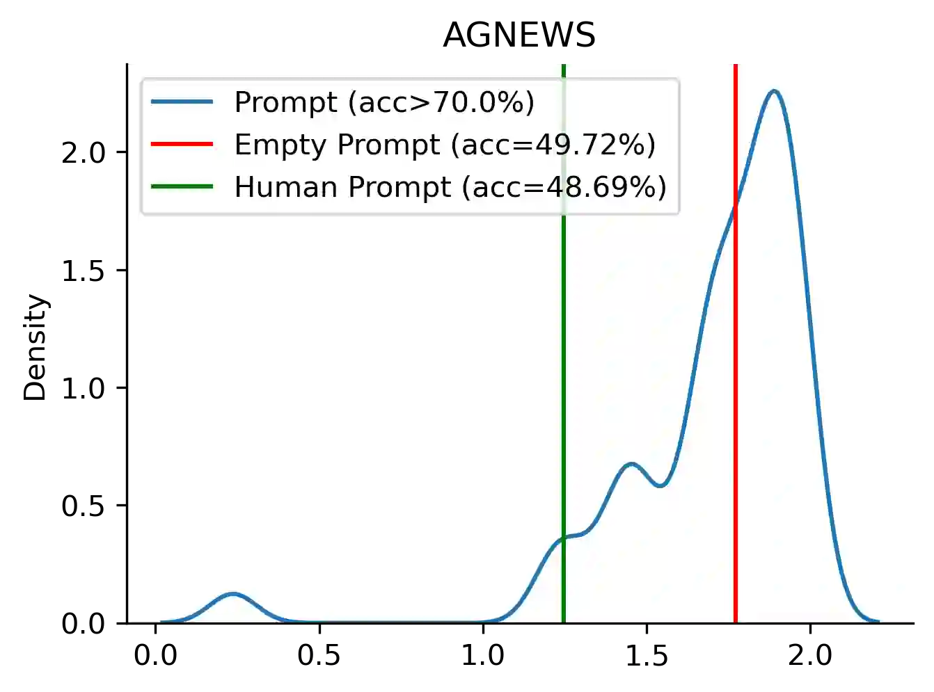 翻译:大型语言模型可以以零速方式执行新任务, 以自然语言提示来指定想要的行为。 这种提示通常是手工设计的, 但也可以用基于梯度的方法从标签的数据中学习 。 但是, 它没有被充分探讨哪些因素使提示有效, 特别是当提示是自然语言时。 在本文中, 我们调查有效提示共享的共同属性 。 我们首先根据兰格文动态, 提出了一个人类可读快速调试方法( F F LUENT P ROMPT ), 其中包含一种精密限制, 以找到不同分布的有效和流畅的提示。 我们的分析显示, 有效提示与任务领域主题相关, 并校准先前标签词的概率 。 基于这些发现, 我们还提出一种方法, 仅使用未标的数据生成提示, 以三种任务平均7.0%的精准度超过强的基线 。