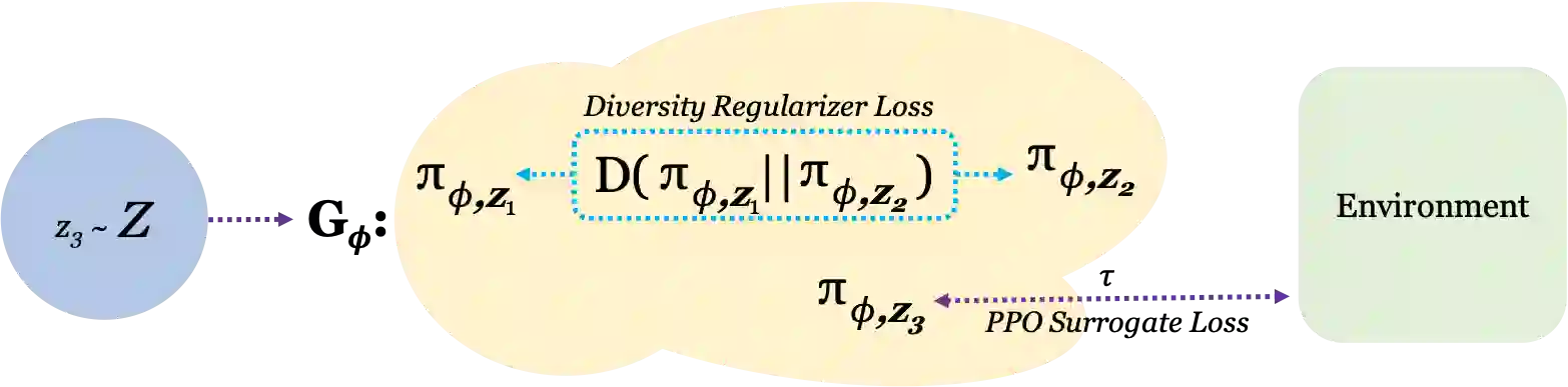 翻译:在自然界,生命已经找到了无数生存和经常繁荣的方法。在物种之间,甚至在物种内部,每个人都以某种方式具有独特性,这种多样性为生命提供了适应性和强健性。在这项工作中,我们的目标是在任何特定环境中学习多样化和高回报政策的空间。为此,我们引入了一种基因化的政策模型,为代理政策空间绘制了低维潜伏空间图。我们的方法使整个代理政策群得以学习,而无需使用不同的政策参数。正如现实世界人口可以通过自然选择来适应和演变,我们的方法只能通过选择潜藏空间的政策来适应我们环境的变化。我们测试我们的基因模型在各种环境中的能力,包括开放的网格世界和双人足球环境。可以在https://kenyderek.github.io/adap/上找到代码、可视化和额外实验。