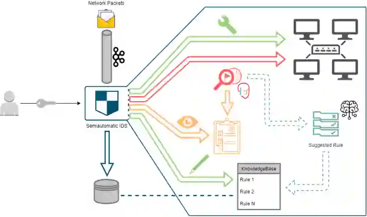 翻译:近些年来,网络攻击的规模和复杂性一直在增加,技术的显著进步也推动了网络攻击。如今,不可避免地需要保护对业务连续性至关重要的系统和数据。因此,建立了许多入侵探测系统,以减轻这些威胁,促进更及时的探测。这项工作提出了一个可以解释和解释的混合入侵探测系统,该系统利用人工智能方法实现更好、更长久的安全。该系统结合了专家书面规则和动态知识,这些知识是决策树算法随着网络活动产生的新证据碎片而不断产生的。