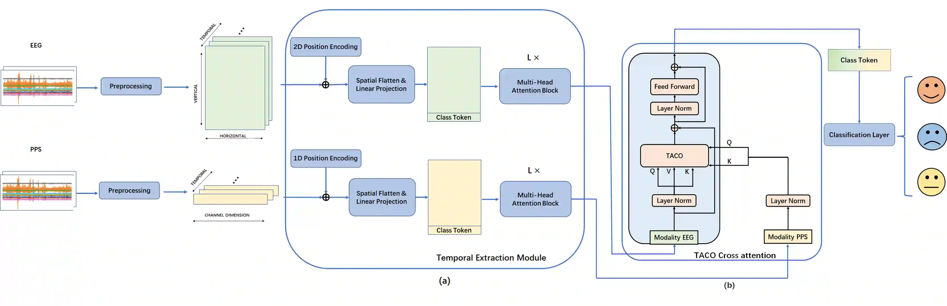 Recently, emotion recognition based on physiological signals has emerged as a field with intensive research. The utilization of multi-modal, multi-channel physiological signals has significantly improved the performance of emotion recognition systems, due to their complementarity. However, effectively integrating emotion-related semantic information from different modalities and capturing inter-modal dependencies remains a challenging issue. Many existing multimodal fusion methods ignore either token-to-token or channel-to-channel correlations of multichannel signals from different modalities, which limits the classification capability of the models to some extent. In this paper, we propose a comprehensive perspective of multimodal fusion that integrates channel-level and token-level cross-modal interactions. Specifically, we introduce a unified cross attention module called Token-chAnnel COmpound (TACO) Cross Attention to perform multimodal fusion, which simultaneously models channel-level and token-level dependencies between modalities. Additionally, we propose a 2D position encoding method to preserve information about the spatial distribution of EEG signal channels, then we use two transformer encoders ahead of the fusion module to capture long-term temporal dependencies from the EEG signal and the peripheral physiological signal, respectively. Subject-independent experiments on emotional dataset DEAP and Dreamer demonstrate that the proposed model achieves state-of-the-art performance.
