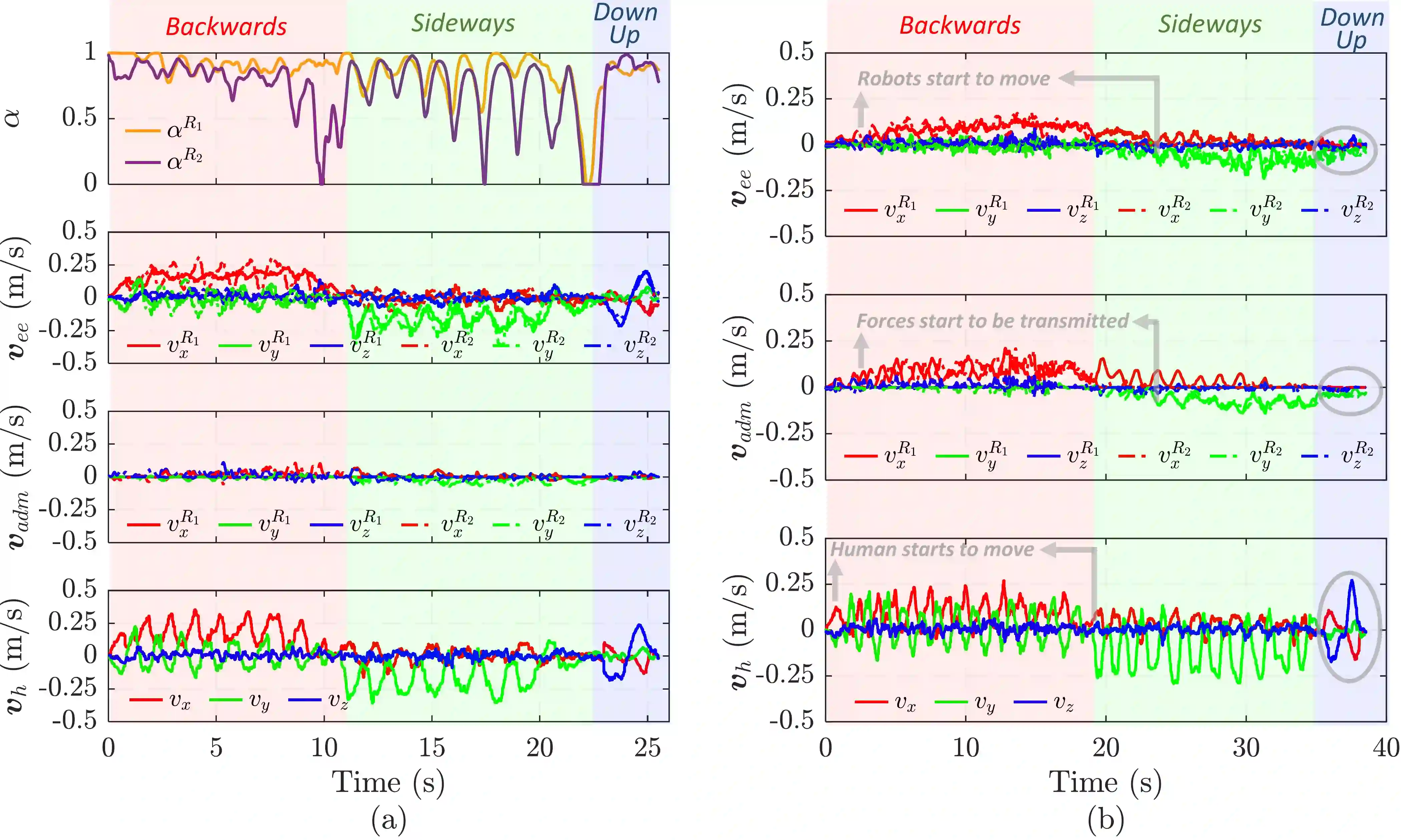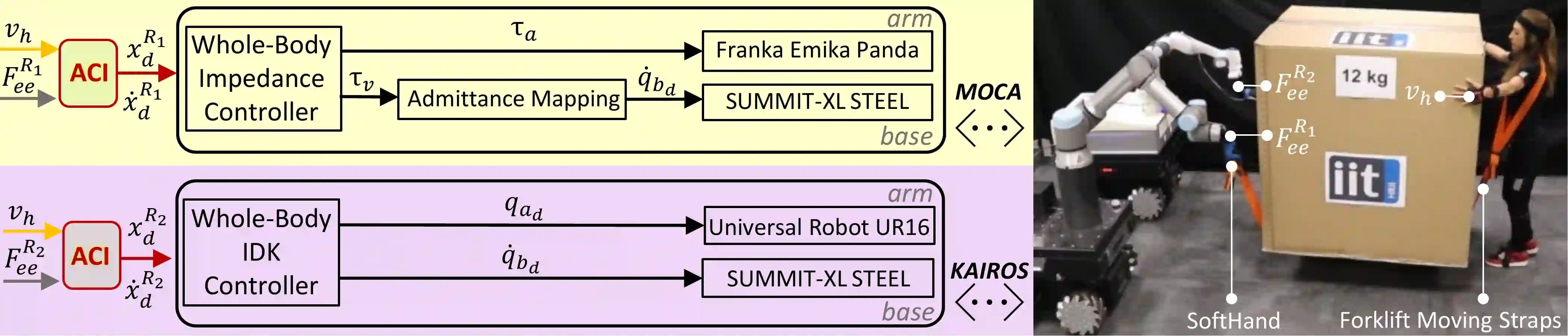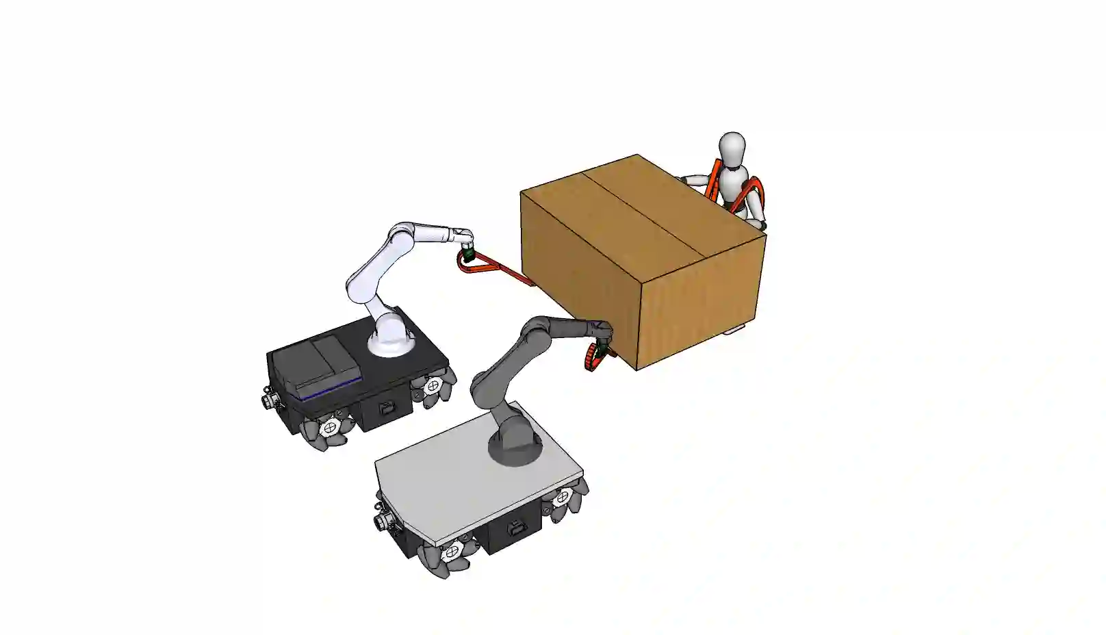 翻译:本手稿引入了个人与多个机器人共同承担的共载任务对象变形-不可知性框架, 由个人和多个机器人共享。 我们的方法允许在与多个机器人根据对象的大小和重量与多个机器人共享负载的同时, 完全控制个人共同携带的轨迹。 这是通过将通过天体传输的偶然信息与从运动抓捕系统中获取的人类运动信息合并而实现的。 这个框架的一个重要优点是, 机器人之间不需要严格的内部通信, 不论物体大小和变形特点。 我们用两种具有挑战性的现实世界情景来验证这个框架: 木制僵硬衣柜和在叉式移动带顶部的散装箱共同运输, 而后一则以可变形物体为特征。 为了评估拟议框架的可概括性, 一个由两部移动操纵器组成的杂乱的团队, 以及一个与不同的DoFs合作的机器人臂。 我们的控制器和基线控制器( i. i. accred contraction controduction contralation) 在这些实验期间展示了我们特别有希望的升级的系统框架。
