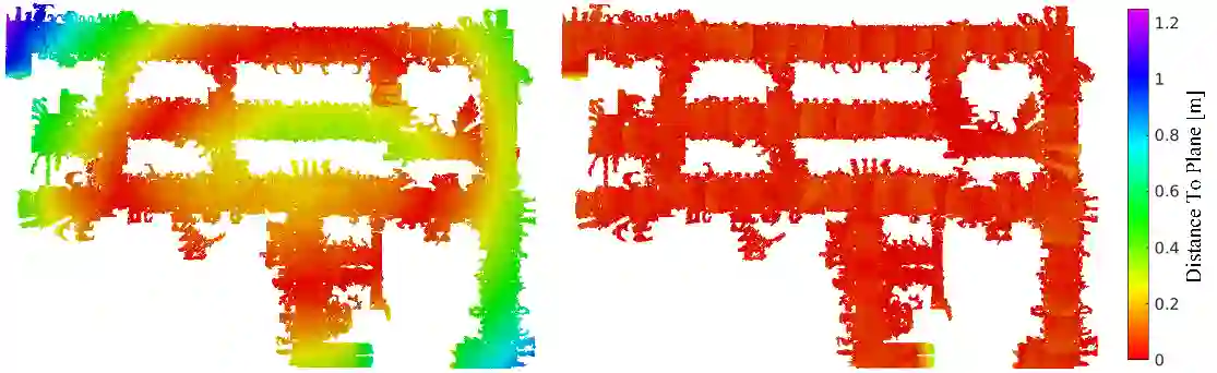 翻译:本文提出3D LiDAR SLAM 算法,名为 Ground-SLAM,该算法利用结构化多层环境中的地面压缩主要由LIDAR测量偏差造成的表面漂移。地面SLAM是根据众所周知的表面图形优化框架开发的。在前端,运动估计使用LIDAR Odograph (LO) 进行,采用新的传感器中心滑动地图进行,根据错误传播模型过滤过期的特征来维持。在每个键盘中,滑动地图被记录为当地地图。附近地面被提取并模拟成一个无穷的平面标志,以Cloeest Point (CP) 参数化为形式。随后,在不同关键框架观测的地面平面被连接在一起,地面限制被结合到形状优化框架,以压缩LO的表面漂移。最后,进行双圈探测,并将剩余错误联合最小化,这可能导致绘制一个全球一致的地图。实验结果显示,拟议方法的准确性表现优劣。