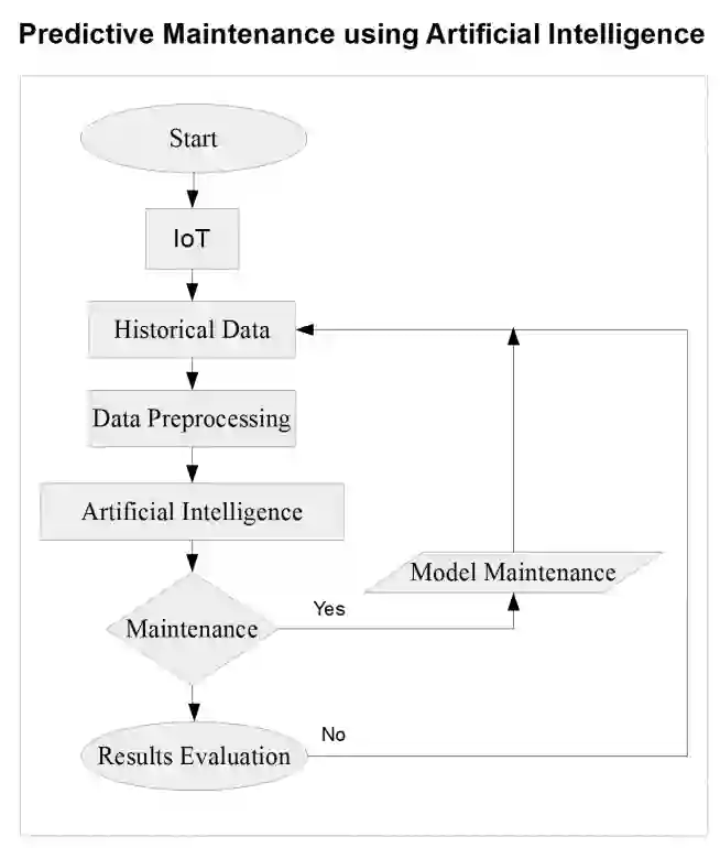 翻译:本文着重介绍了利用机器学习进行预测性维护的趋势。随着第四次工业革命的持续发展,通过IoT, 使用人工智能的技术正在不断发展。因此,各行业一直在利用这些技术优化其生产。通过为本文件进行的科学研究,就利用机器学习连接人工智能和IoT进行预测性维护应用的趋势得出结论。这些趋势与应用预测性维护的行业类型有关,实施了人工智能模型,主要是机器学习模型和通过IoT应用的传感器类型。介绍了六个部门,生产部门占了全部出版物的54.54%。在人工智能模型中,10个部门中最普遍的是人工神经网络、支持矢量机器和随机森林,分别占27.84%、17.72%和13.92%。最后,出现了12类传感器,其中最广泛使用的是温度和振动传感器,占60.71%和46.42%。