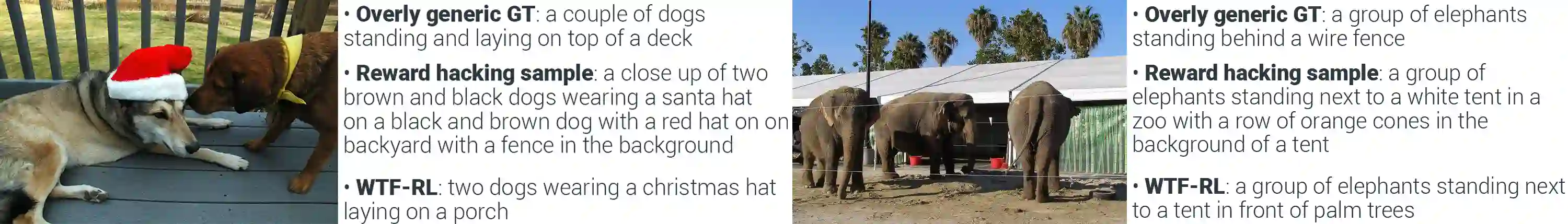 Training image captioning models using teacher forcing results in very generic samples, whereas more distinctive captions can be very useful in retrieval applications or to produce alternative texts describing images for accessibility. Reinforcement Learning (RL) allows to use cross-modal retrieval similarity score between the generated caption and the input image as reward to guide the training, leading to more distinctive captions. Recent studies show that pre-trained cross-modal retrieval models can be used to provide this reward, completely eliminating the need for reference captions. However, we argue in this paper that Ground Truth (GT) captions can still be useful in this RL framework. We propose a new image captioning model training strategy that makes use of GT captions in different ways. Firstly, they can be used to train a simple MLP discriminator that serves as a regularization to prevent reward hacking and ensures the fluency of generated captions, resulting in a textual GAN setup extended for multimodal inputs. Secondly, they can serve as additional trajectories in the RL strategy, resulting in a teacher forcing loss weighted by the similarity of the GT to the image. This objective acts as an additional learning signal grounded to the distribution of the GT captions. Thirdly, they can serve as strong baselines when added to the pool of captions used to compute the proposed contrastive reward to reduce the variance of gradient estimate. Experiments on MS-COCO demonstrate the interest of the proposed training strategy to produce highly distinctive captions while maintaining high writing quality.