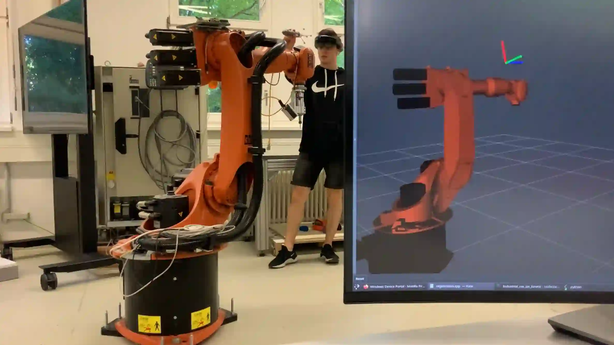 翻译:通过跟踪智能输入设备进行直观的机器人编程依赖于固定的外部追踪系统,最常使用红外标记。这种方法常常与投影仪为基础的增强现实相结合,以获得更好的可视化和接口。组合系统虽然为无经验用户提供了短周期时间的直观编程平台,但却是不动、昂贵的并且需要大量校准。在面对多变的环境和大量机器人时,这种方法变得相当不实用。在这里,我们展示了使用微软HoloLens头戴式显示器的红外标记跟踪的工作原理。HoloLens可以映射环境,在线注册机器人,并在机器人坐标系中跟踪配备红外标记的智能设备。我们设想我们的工作将提供基础,将多年来为需要投影仪和跟踪输入设备的系统开发的许多范例转移到一个高度便携的系统,该系统不需要任何校准或特殊设置。我们在工业机器人单元中测试了标记跟踪的质量,并将我们的跟踪与通过ART-3跟踪系统获得的地面真相进行比较。
