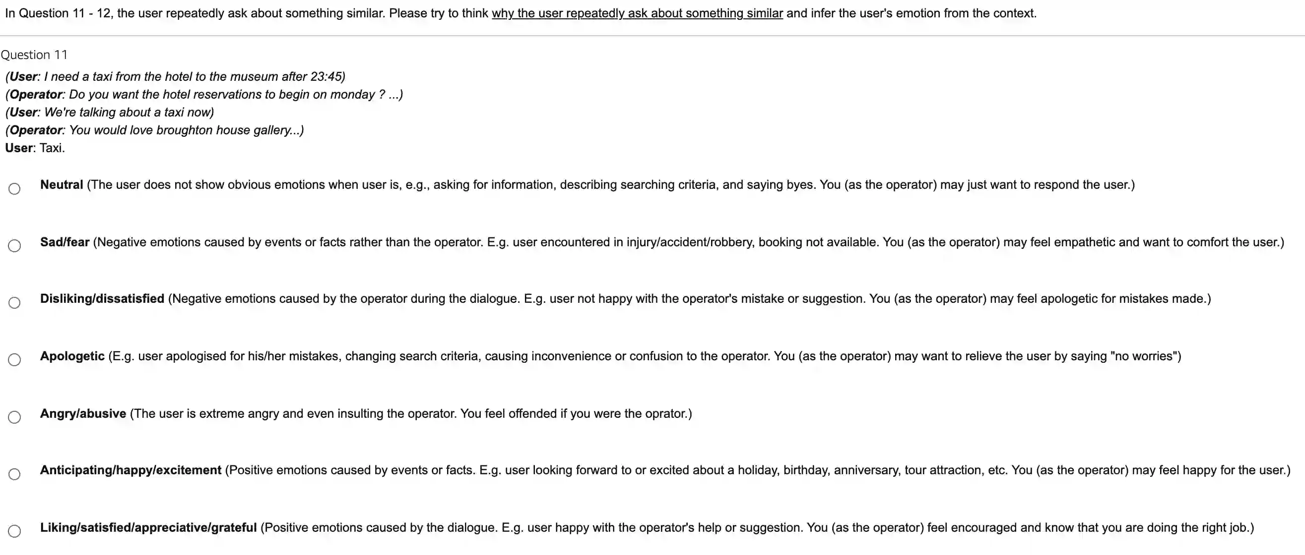 翻译:认识情感的能力使人能够理解一种对话的人工智能。虽然在聊天对话中,情绪受到大量关注,但任务导向对话中的情绪尽管具有同样重要的作用,例如信号失败或成功,但基本上被忽略。现有的情绪附加说明的任务导向团体在规模、标签丰富性和公众可用性方面都有限,为下游任务制造瓶颈。为了在任务导向的对话中为情感研究奠定基础,我们引入了EmoWOZ,这是一个大规模人工情感附加说明式任务导向对话的集合。EmoWOZ以多功能面向任务的对话数据集为基础。它包含超过11K的对话,其用户语气说明超过83K。除了来自多功能团队的Wizard-Ozz对话之外,我们还收集了同一系列的人类机器对话,以充分覆盖在数据驱动的对话系统存续期间可能发生的各种情感空间。我们最了解的是,这是其同类对话的第一个大规模开源数据集。我们提议了一种面向情感导向性对话的新任务定位,我们提出了一种面向感官对话的定位系统。我们将一个面向感官感官对话的跟踪性任务定位,以展示我们的任务定位为目的。