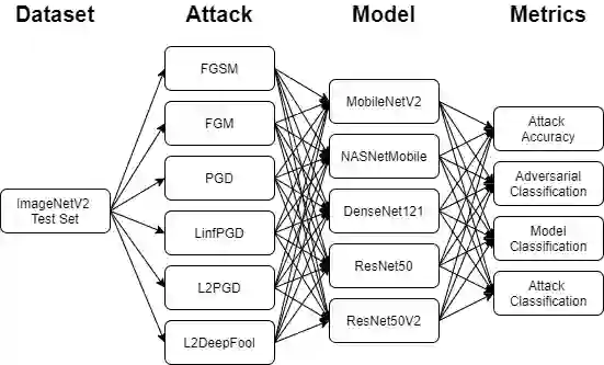 Production machine learning systems are consistently under attack by adversarial actors. Various deep learning models must be capable of accurately detecting fake or adversarial input while maintaining speed. In this work, we propose one piece of the production protection system: detecting an incoming adversarial attack and its characteristics. Detecting types of adversarial attacks has two primary effects: the underlying model can be trained in a structured manner to be robust from those attacks and the attacks can be potentially filtered out in real-time before causing any downstream damage. The adversarial image classification space is explored for models commonly used in transfer learning.