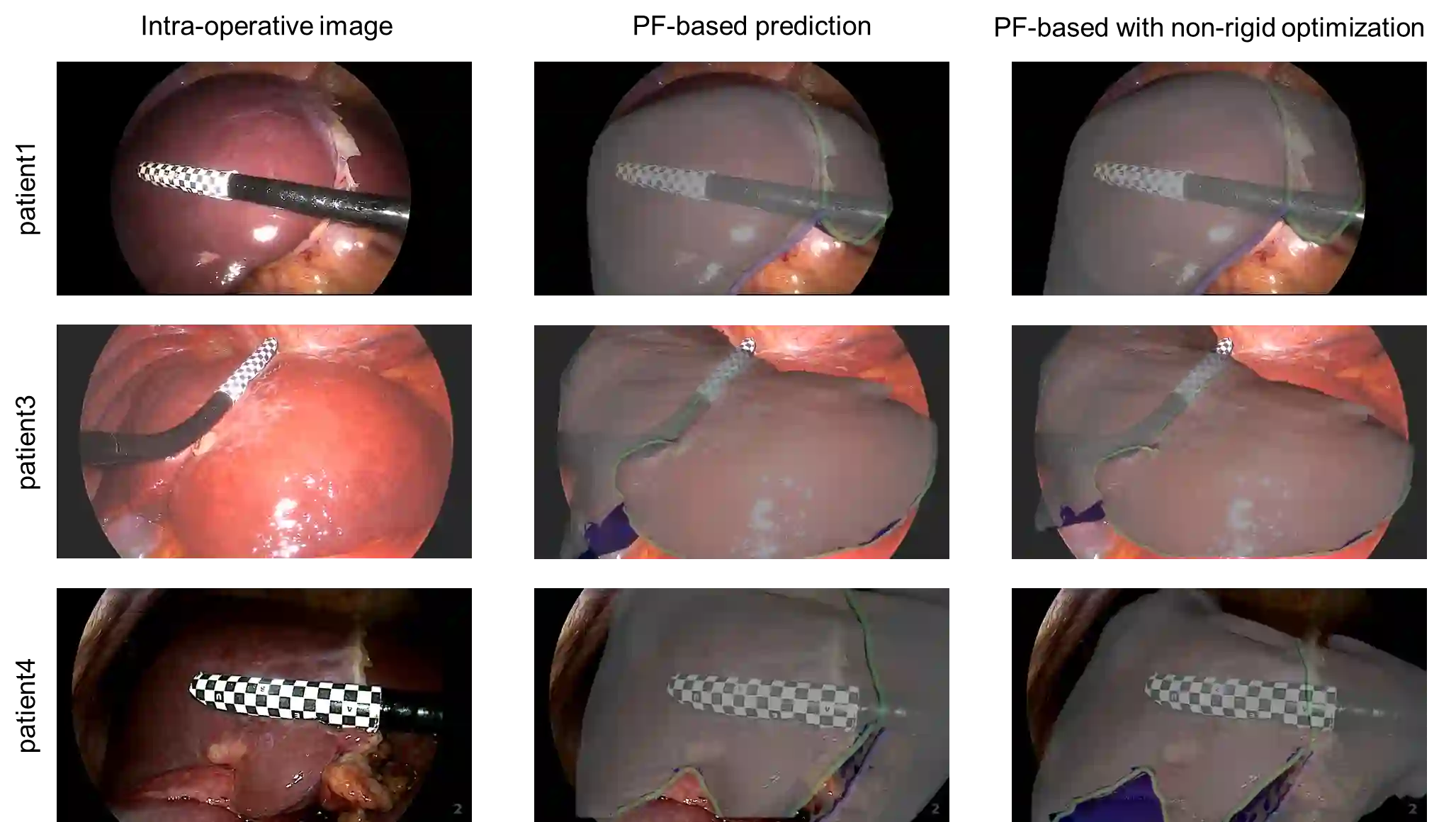 翻译:增强现实技术可提升腹腔镜肝脏手术中的肿瘤定位精度。现有配准流程通常依赖器官轮廓;可变形(非刚性)对齐常通过结合降维或机器学习组件的有限元模型实现。本研究将腹腔镜深度图与基础姿态估计器相结合,用于相机-肝脏姿态估计,并以非刚性迭代最近点算法替代基于有限元的形变模型,从而降低工程/建模复杂度及专业知识要求。在真实患者数据中,采用深度增强基础姿态方法在3例病例中实现了9.91毫米的平均配准误差。刚性-NICP联合配准优于纯刚性配准,证明NICP可作为有限元形变模型的高效替代方案。该流程在达到临床相关精度的同时,为基于有限元的形变方法提供了轻量化、工程友好的替代方案。