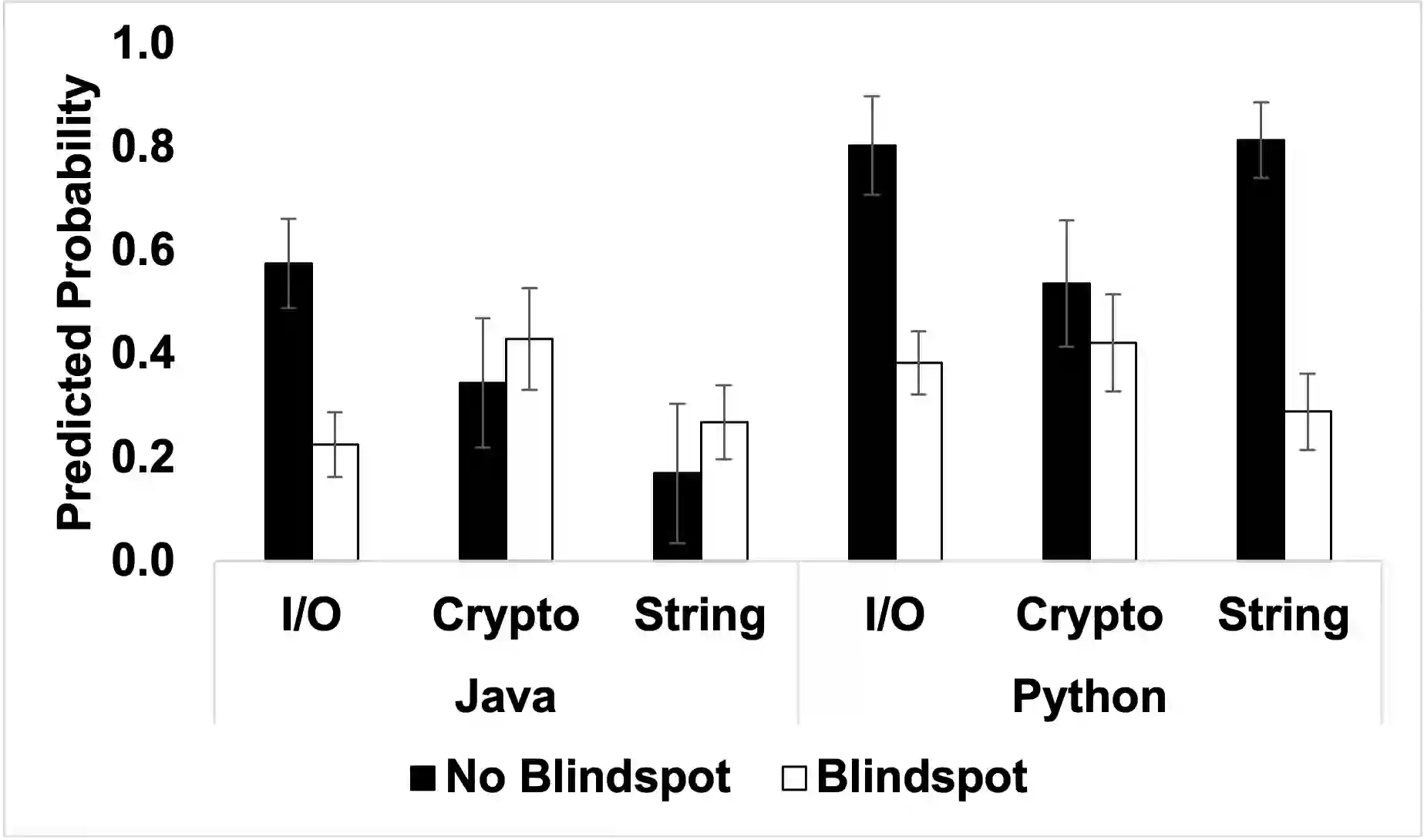翻译:API 中的盲点可以导致软件工程师引入脆弱性,但不幸的是,这样的盲点很常见。 我们研究盲人点的API对两种语言的开发者的影响。 我们的研究是,复制109个开发者、24个Java-API 控制的实验,从而让盲人点对开发者产生更大的影响。 我们的复制适用于Python, 涉及129个新开发者和22个新的API。 我们发现,使用盲人点的API在统计上大大降低了开发者用两种语言正确解释API的能力, 但这种影响对Python来说更为明显。 有趣的是,对于 Java来说,由于代码的复杂性依赖于AIPI, 而随着对 Python 的测试, 效果却增加了, 而对于 Python, 情况正好相反。 开发者认为API 使用更困难、更清晰、更不清晰、更不清晰的Arenti 和专家的Arentireal 都无法理解,最后, 也表明, 相对的Arentim developments 和专家的Arevis real 都无法理解。