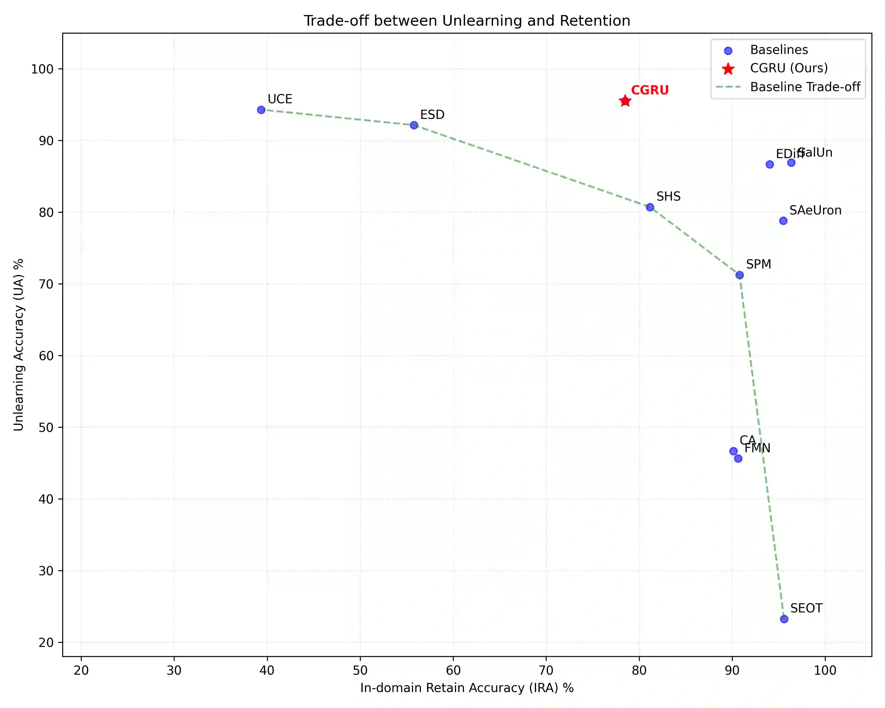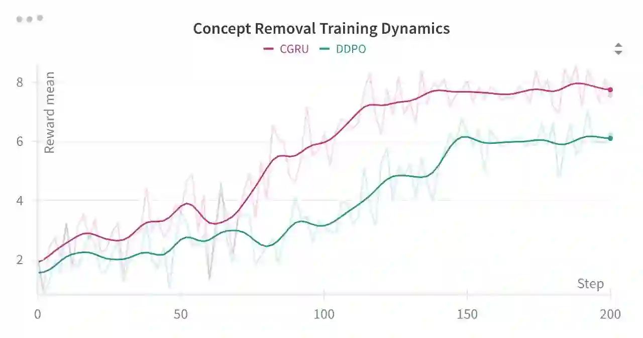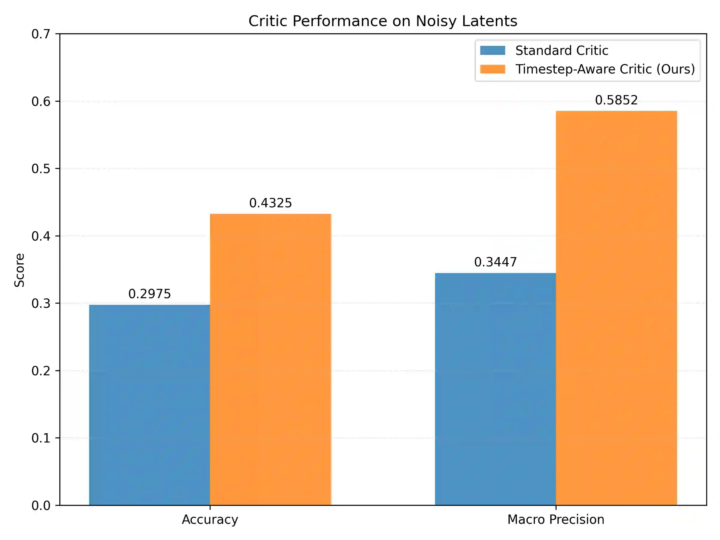 翻译:文本到图像扩散模型的机器遗忘旨在移除特定概念的同时保持模型整体效用。现有扩散遗忘方法通常依赖于监督式权重编辑或全局惩罚;强化学习方法虽具灵活性,但往往优化稀疏的轨迹末端奖励,导致高方差更新与弱信用分配。本文提出一种通用的扩散遗忘强化学习框架,将去噪过程视为序列决策问题,并引入具有噪声步奖励的时序感知评论家。具体而言,我们在噪声潜变量上训练基于CLIP的奖励预测器,利用其逐步信号计算优势估计值,以执行反向扩散核的策略梯度更新。该算法实现简单,支持离策略数据复用,并可嵌入标准文本到图像主干模型。在多种概念上的实验表明,本方法在保持图像质量与良性提示保真度的同时,实现了优于或可比拟强基线的遗忘效果;消融研究证实:(1)逐步评论家与(2)噪声条件奖励是算法稳定性与有效性的关键。我们公开了代码与评估脚本,以促进基于强化学习的扩散遗忘研究的可复现性与未来发展。