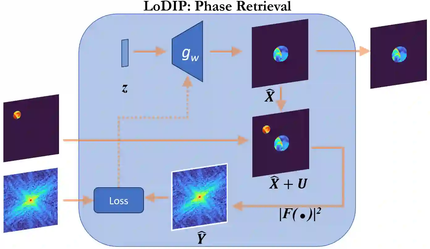 Phase retrieval (PR) is fundamentally important in scientific imaging and is crucial for nanoscale techniques like coherent diffractive imaging (CDI). Low radiation dose imaging is essential for applications involving radiation-sensitive samples. However, most PR methods struggle in low-dose scenarios due to high shot noise. Recent advancements in optical data acquisition setups, such as in-situ CDI, have shown promise for low-dose imaging, but they rely on a time series of measurements, making them unsuitable for single-image applications. Similarly, data-driven phase retrieval techniques are not easily adaptable to data-scarce situations. Zero-shot deep learning methods based on pre-trained and implicit generative priors have been effective in various imaging tasks but have shown limited success in PR. In this work, we propose low-dose deep image prior (LoDIP), which combines in-situ CDI with the power of implicit generative priors to address single-image low-dose phase retrieval. Quantitative evaluations demonstrate LoDIP's superior performance in this task and its applicability to real experimental scenarios.