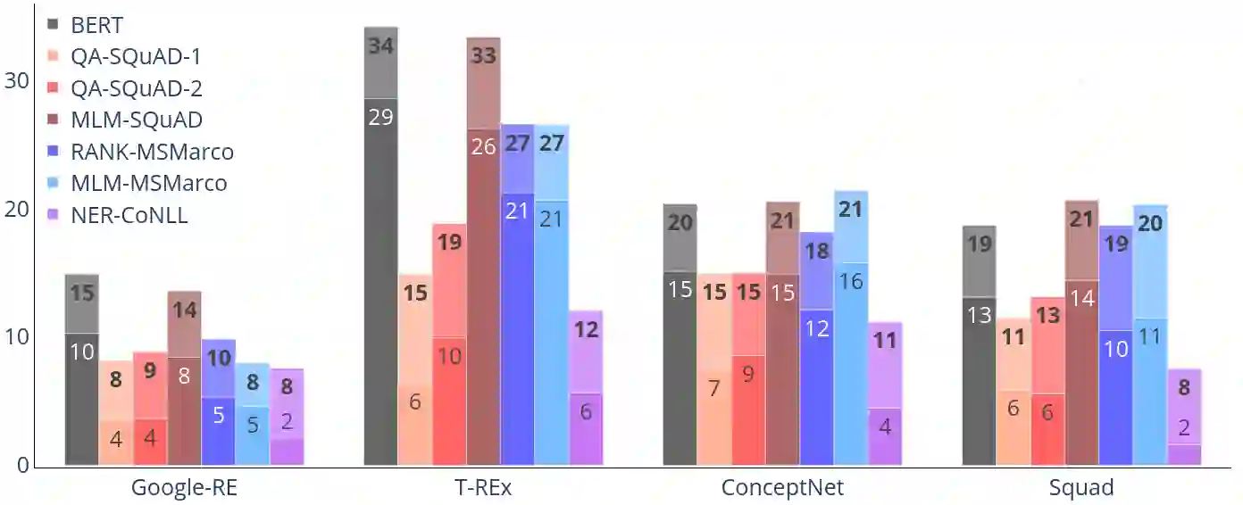 翻译:检验复杂的语言模型最近揭示了对在所学的表述中发现的语言和语义模式的一些洞察力。在本条中,我们专门调查生物伦理学研究小组,以了解和测量它在参数记忆中获取的关系知识。虽然对语言理解的测试通常适用于生物伦理学研究小组的所有层次以及微调模型,但对于事实知识并没有这样做。我们利用现有的知识基础完成任务(LAMA)来探测经过预先训练的和经过精细调的BERT模型(级别、回答问题、NER)的每一层。我们的研究结果表明,知识并不仅仅包含在生物伦理学小组的最后一层中。中间层为发现的全部知识贡献了相当大的数量(17-60% ) 。检验中间层还揭示了不同类型知识以不同的速度出现的情况。当生物伦理学小组进行微调时,关系知识被遗忘了。我们发现,由于微调目标和培训数据数据的影响,排位模型在最后一层中会忘记最少的知识,并且保留更多的知识,而与隐蔽的语言模型和问答相比。然而,隐藏的语言模型对于所发现的总知识的贡献是相当大的数量。但是,在获得的最初的实验能力中,我们从获得的深度研究中掌握了新的记忆中,我们掌握了最新的学习中的主要数据。
