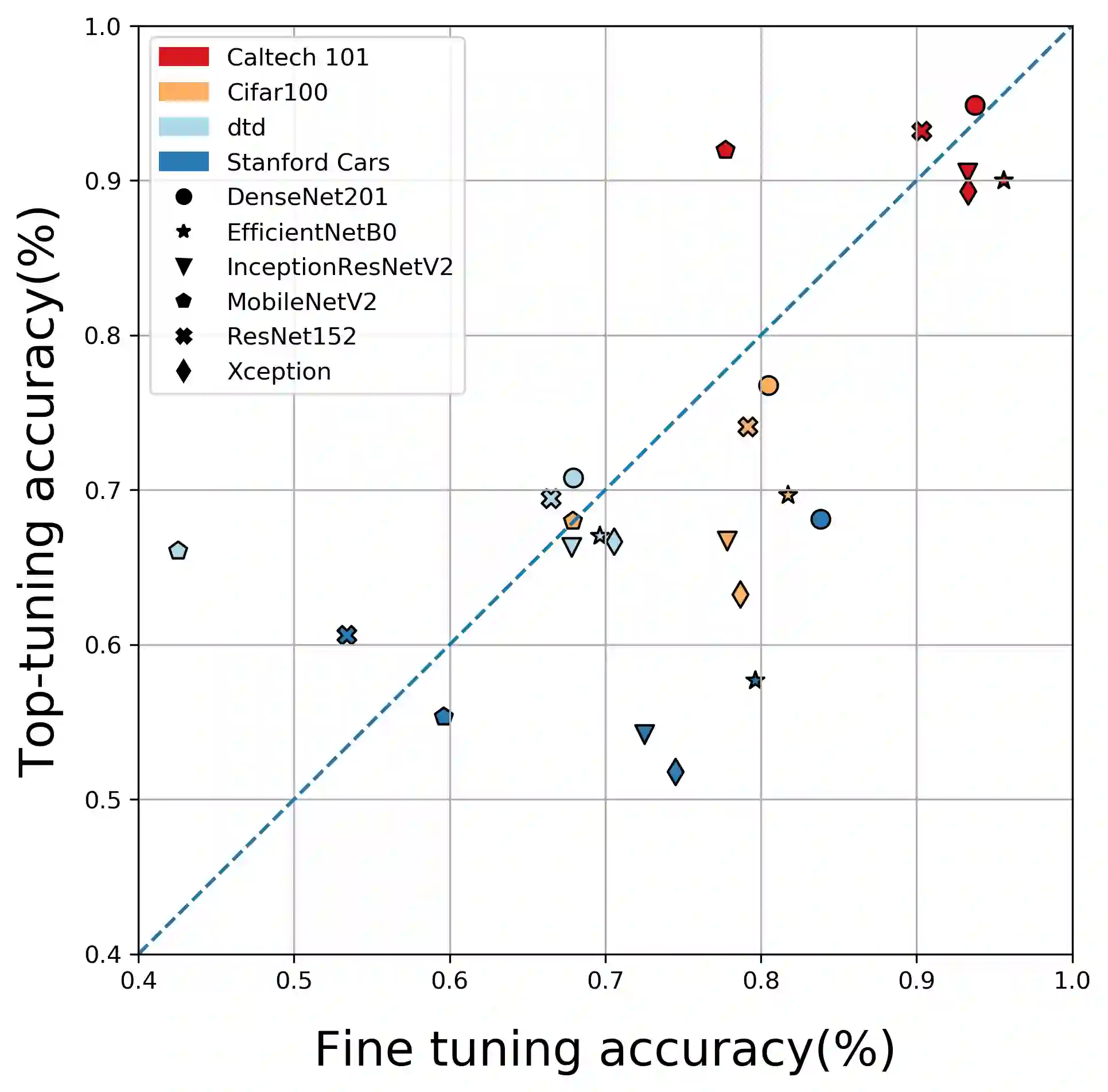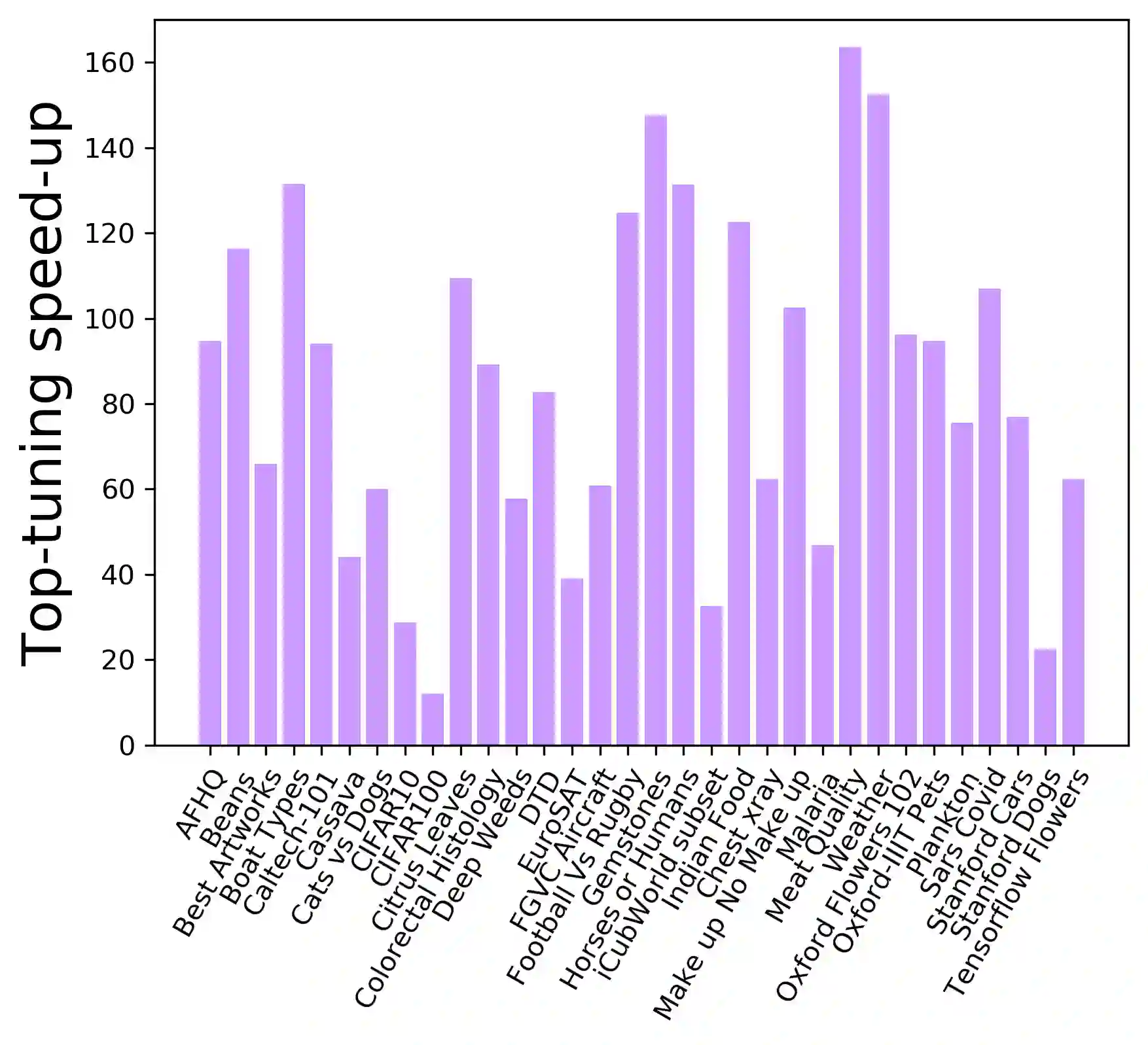 翻译:深层学习结构的令人印象深刻的绩效与模型复杂性的大幅增长相关联。 数百万参数需要调整, 并相应地进行培训和推算时间。 但大规模微调是必要的吗? 在本文中,我们考虑一种简单的转移学习方法,利用预先训练的革命性特征作为快速内核方法的投入。 我们称这一方法为顶调,因为只有内核分类器才受过培训。 通过实施2500多个培训流程,我们发现这种顶调方法提供了类似的准确性w.r.t.微调,而培训时间在一到两个数量级之间,规模较小。这些结果表明,顶调为小型/中等数据集的微调提供了有用的替代方法,特别是在培训效率至关重要的情况下。