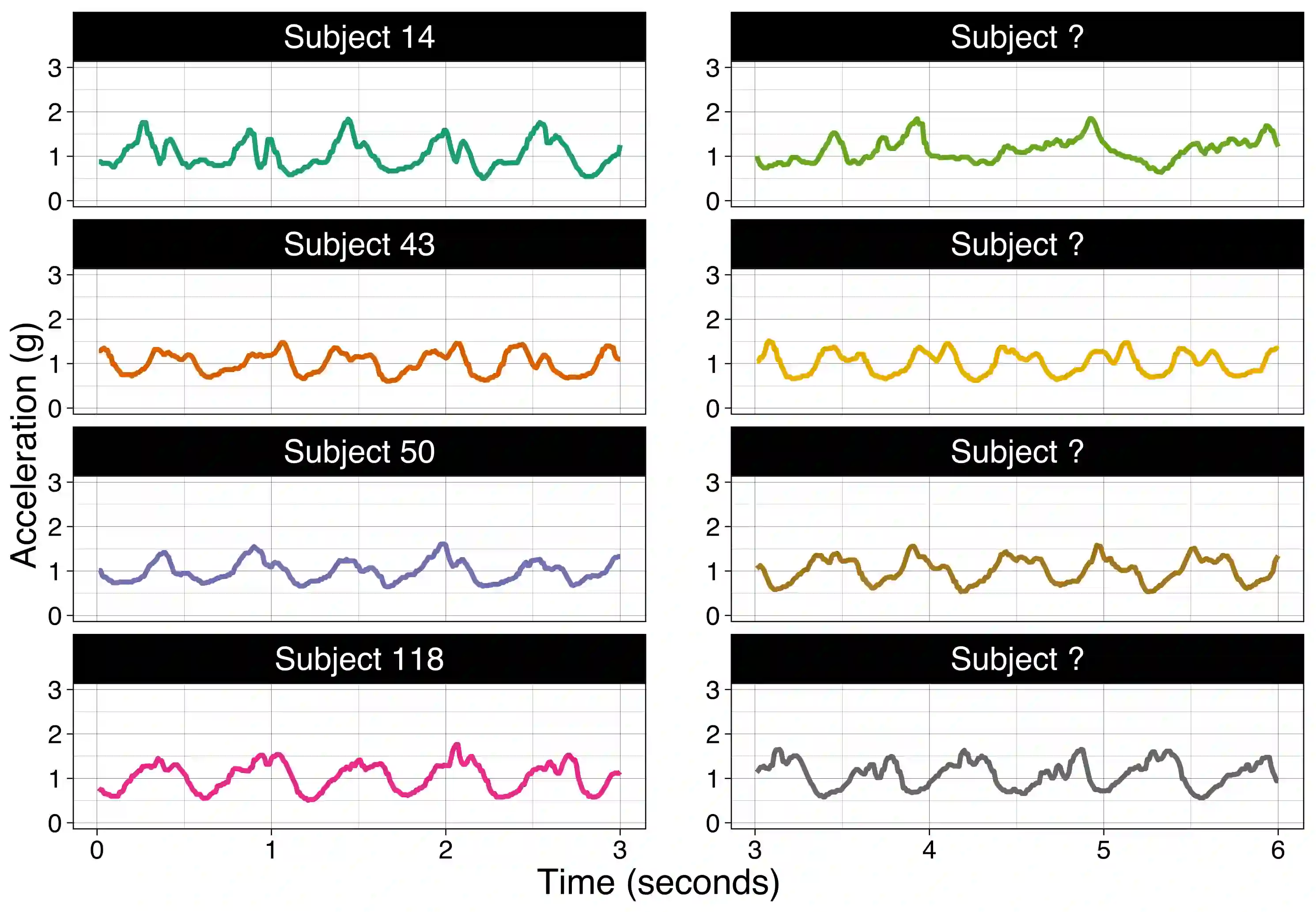 We consider the problem of predicting an individual's identity from accelerometry data collected during walking. In a previous paper we introduced an approach that transforms the accelerometry time series into an image by constructing its complete empirical autocorrelation distribution. Predictors derived by partitioning this image into grid cells were used in logistic regression to predict individuals. Here we: (1) implement machine learning methods for prediction using the grid cell-derived predictors; (2) derive inferential methods to screen for the most predictive grid cells; and (3) develop a novel multivariate functional regression model that avoids partitioning of the predictor space into cells. Prediction methods are compared on two open source data sets: (1) accelerometry data collected from $32$ individuals walking on a $1.06$ kilometer path; and (2) accelerometry data collected from six repetitions of walking on a $20$ meter path on two separate occasions at least one week apart for $153$ study participants. In the $32$-individual study, all methods achieve at least $95$% rank-1 accuracy, while in the $153$-individual study, accuracy varies from $41$% to $98$%, depending on the method and prediction task. Methods provide insights into why some individuals are easier to predict than others.