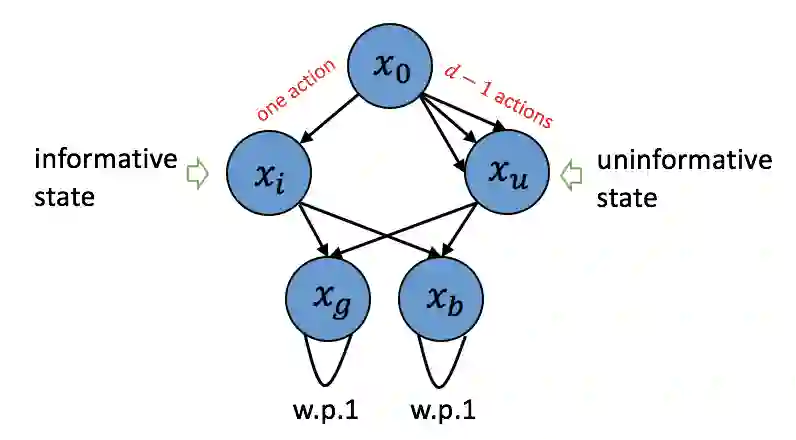 翻译:我们调查了在固定的地平线上进行在线强化学习的难度,即线性马尔科夫决定程序(MDP),特别侧重于环境层面大于事件数量的高维系统。 我们的贡献是双重的。 首先,我们提供了一个较低的约束,表明线性遗憾在本案中一般是不可避免的,即使存在收集良好数据的政策。 下约束的建筑使用一个具有固定数目的国家的MDP,而带有环境层面的行动尺度的数量是固定的。 请注意,当地平线被固定在一个区域时,线性随机强盗的情况可以避免线性遗憾。 其次,我们表明,如果学习者有机会接触一个收集良好数据的政策,那么一个适合Qiteration的Lasso变异体则几乎没有维度的遗憾, $tilde{O}( s ⁇ 2/3} N ⁇ 2/3} 美元, 其中美元是事件的数量, $sersity is the scorrisity level) 。 这表明,在大型行动环境中,学习的困难可以归因于寻找一个良好的探索政策的困难。