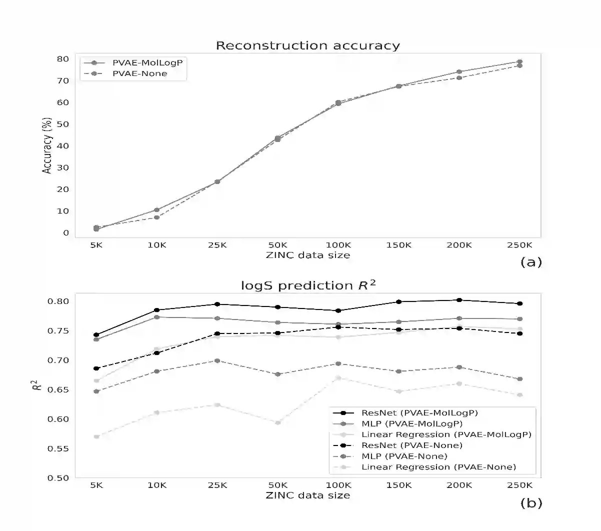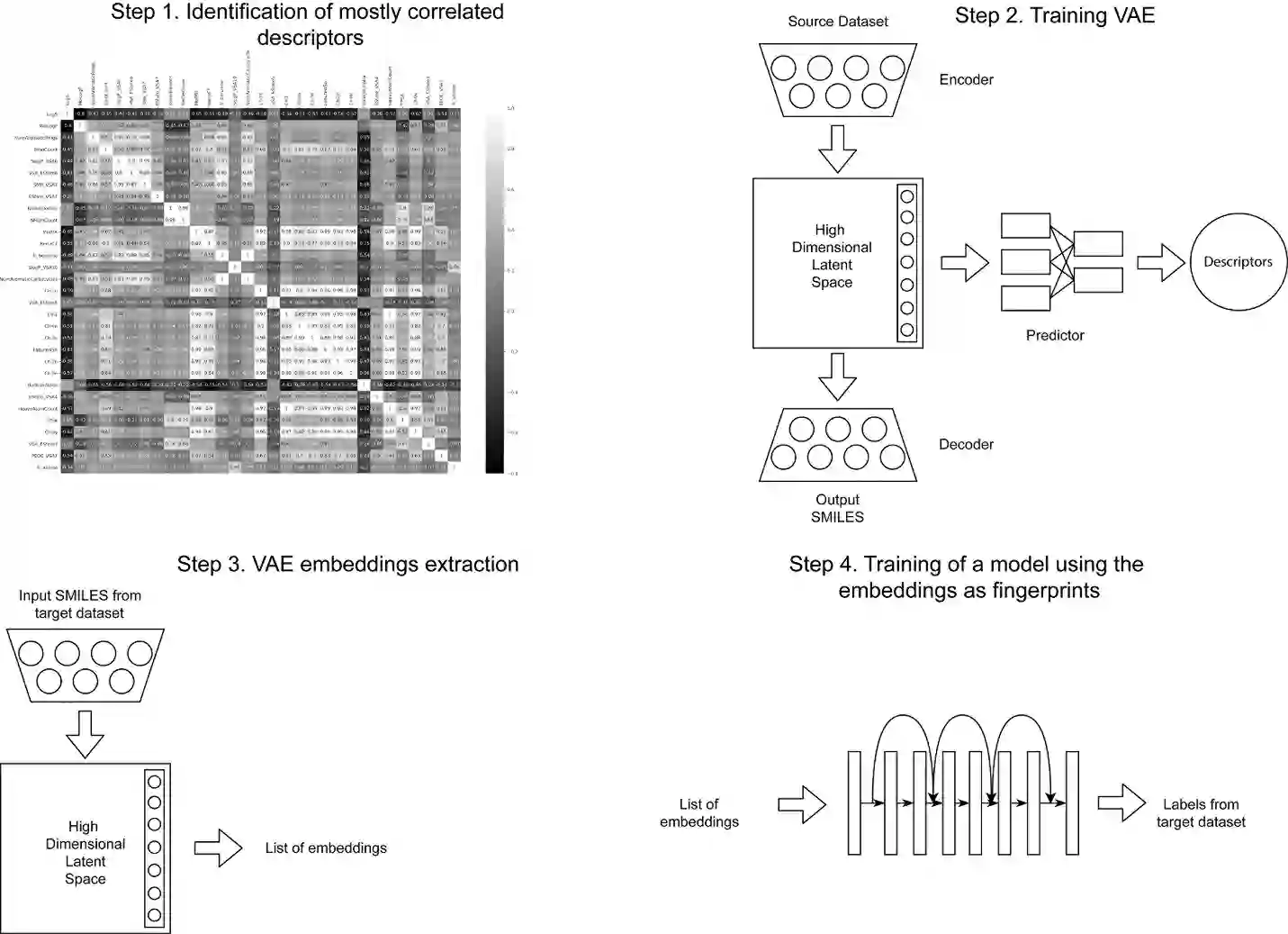 翻译:收集化学信息学中许多重要任务的标签数据需要时间,需要花费昂贵的实验。近年来,机器学习被用来利用大型无标签分子数据集学习分子的丰富表现,并传授知识,以有限数据集解决更具挑战性的任务。变式自动编码器是建议用于化学财产预测和分子生成任务转让的工具之一。在这项工作中,我们提出了一个简单的方法,通过将相关分子描述器的更多信息纳入变式自动编码器所学的演示中来改进机器学习模型的化学财产预测性能。我们核实了三种属性预测要求的方法。我们探讨了集成描述器的数量、描述器与目标属性、数据集大小等的相关性。最后,我们展示了属性预测模型的性能与属性预测数据集与代表空间内较大无标签数据集之间的距离之间的关系。